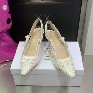 Dior J’Adior Slingback Pumps 65MM In White Macrame Embroidered Cotton