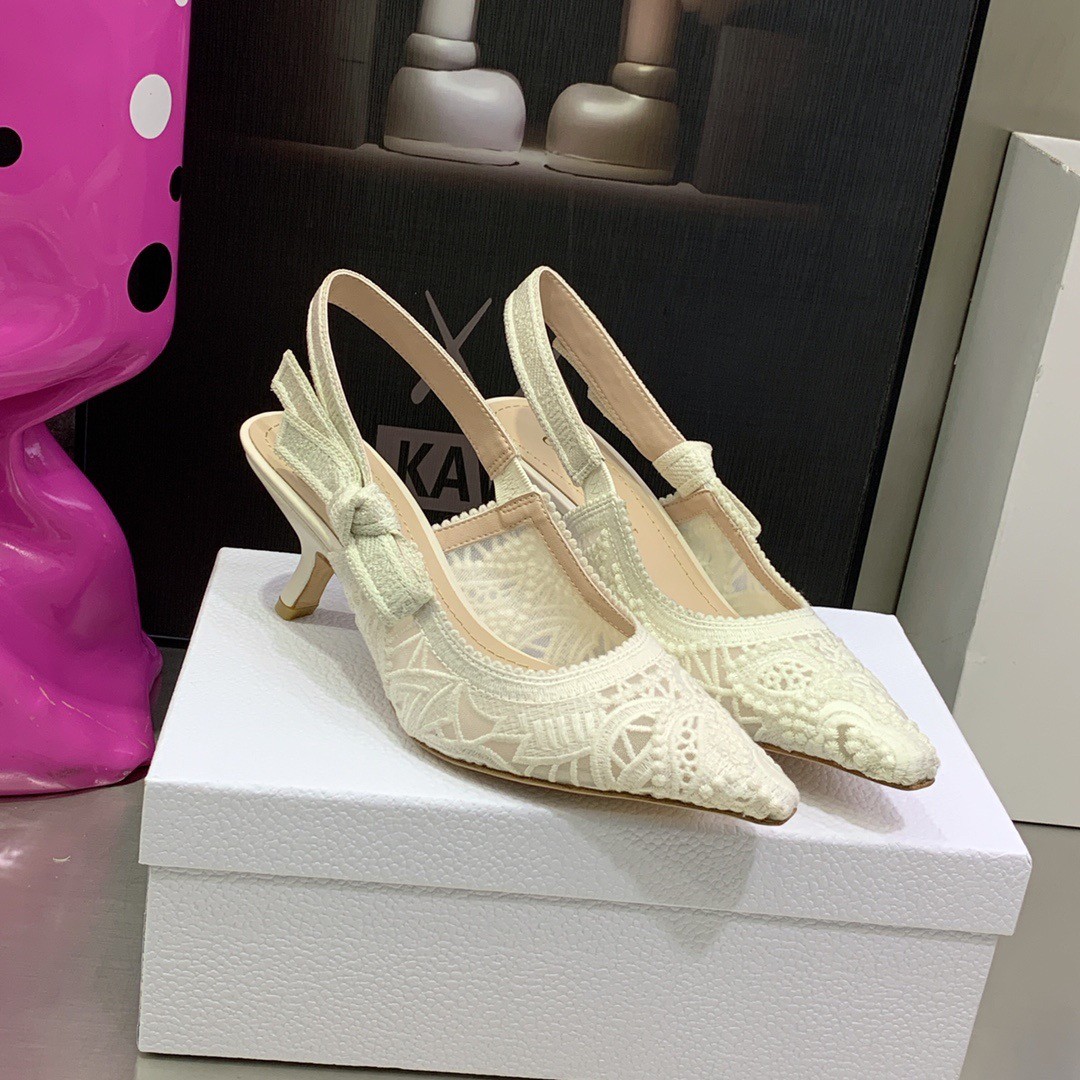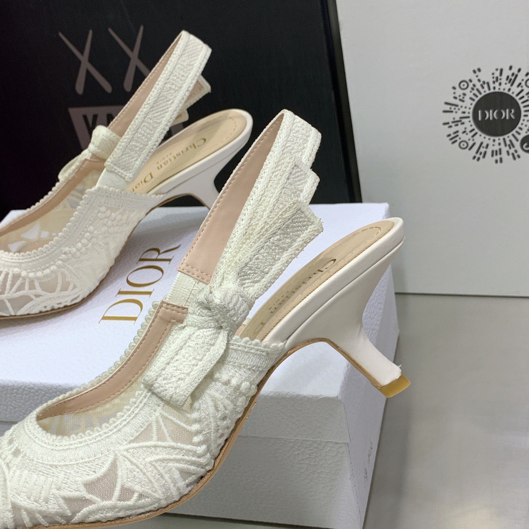 Dior J'Adior Slingback Pumps 65MM In White Macrame Embroidered Cotton