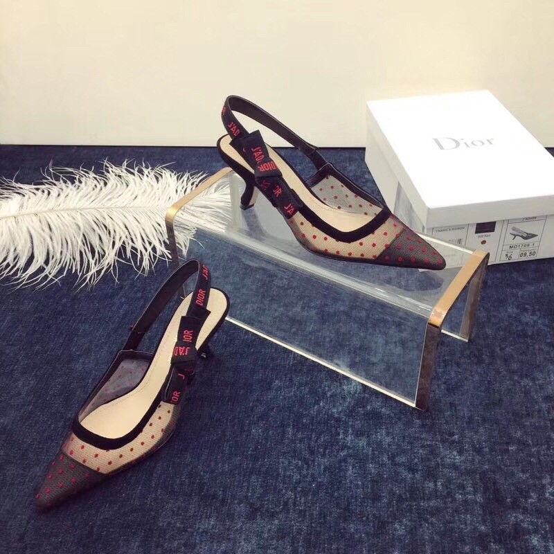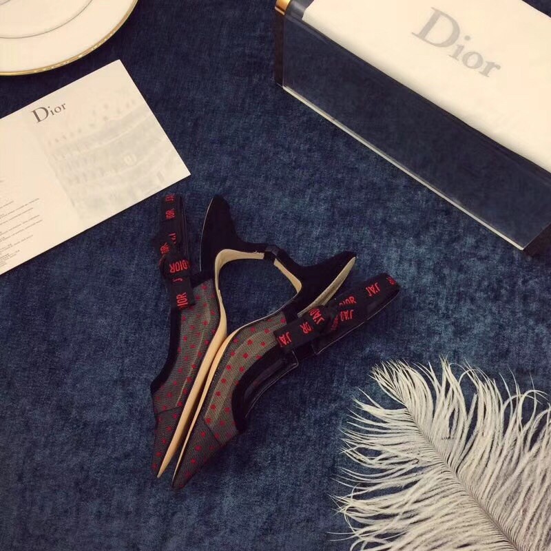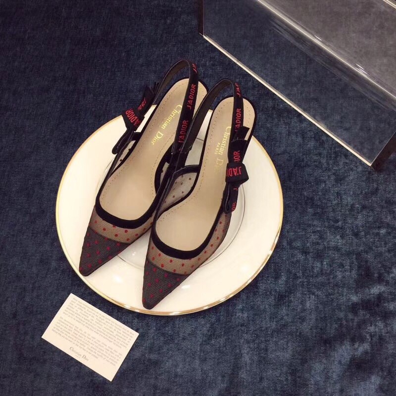 Dior J’Adior Slingback Pumps In Red Dotted Swiss