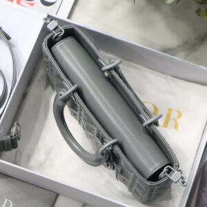 Dior Lady D-Joy Bag In Grey Calfskin with Diamond Motif