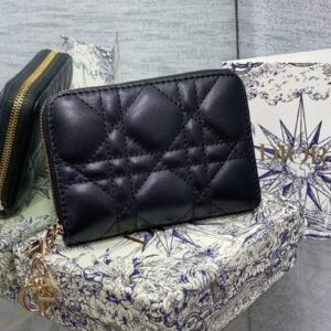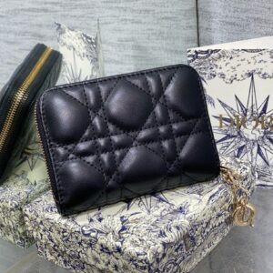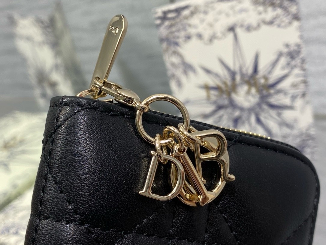 Dior Lady Dior Voyageur Small Coin Purse in Black Lambskin