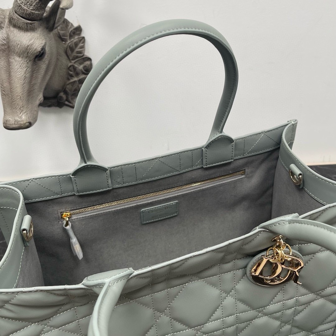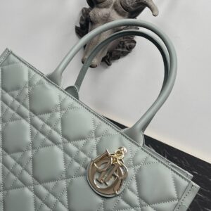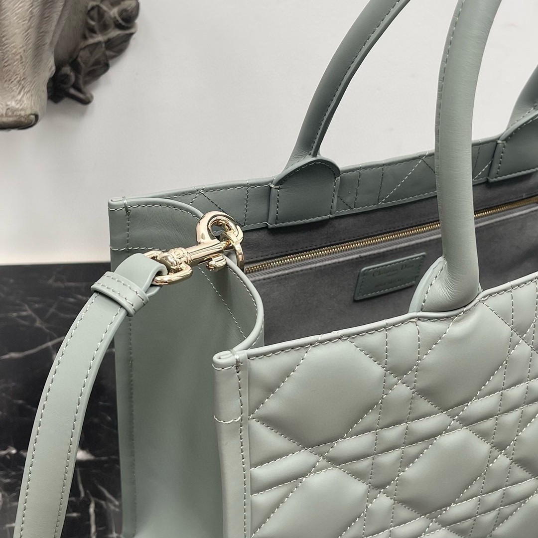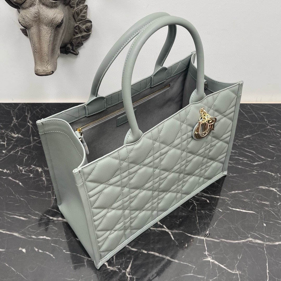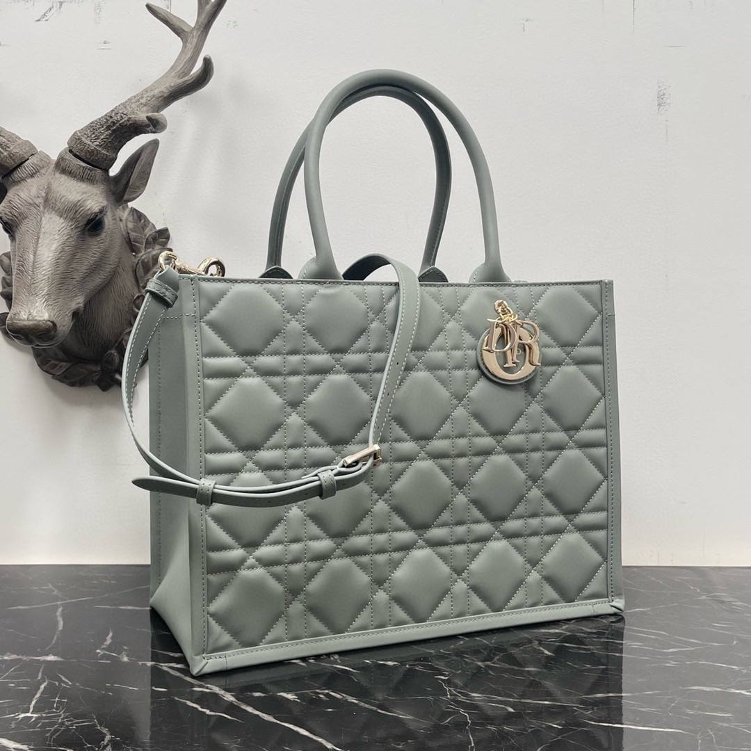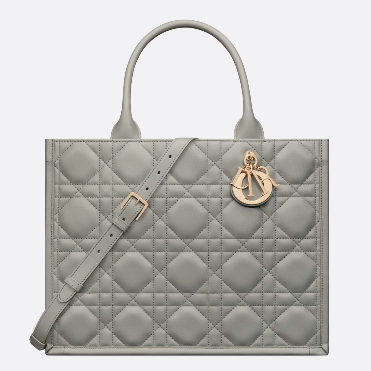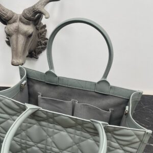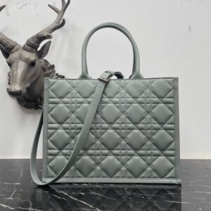 Dior Medium Book Tote Bag with Strap in Grey Macrocannage Calfskin