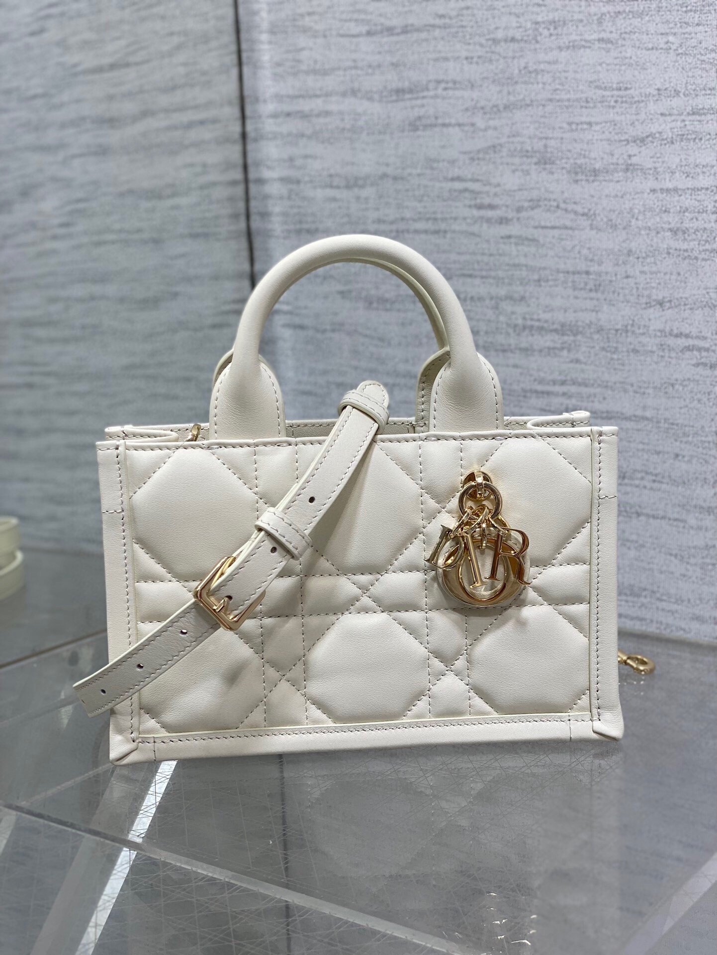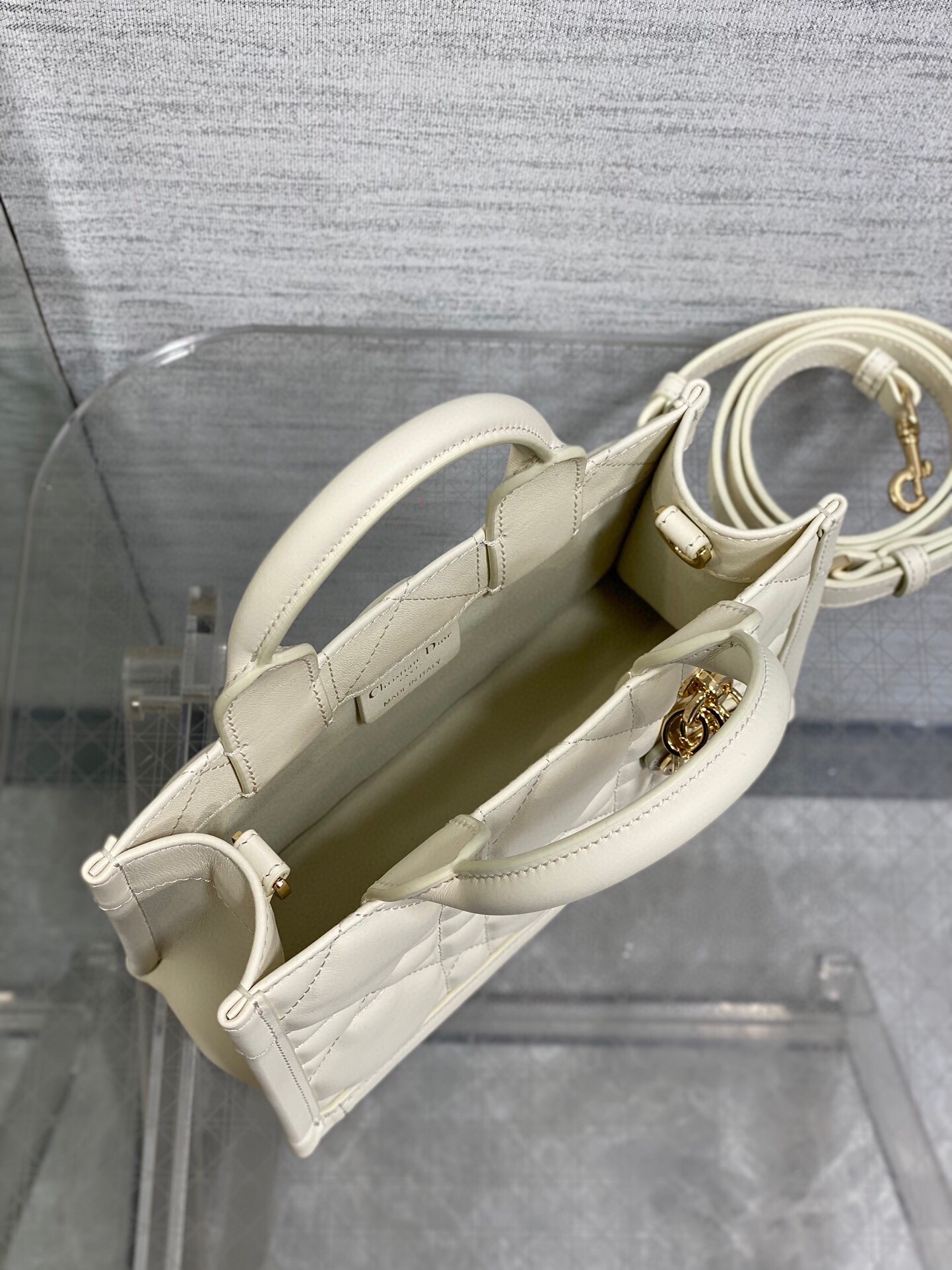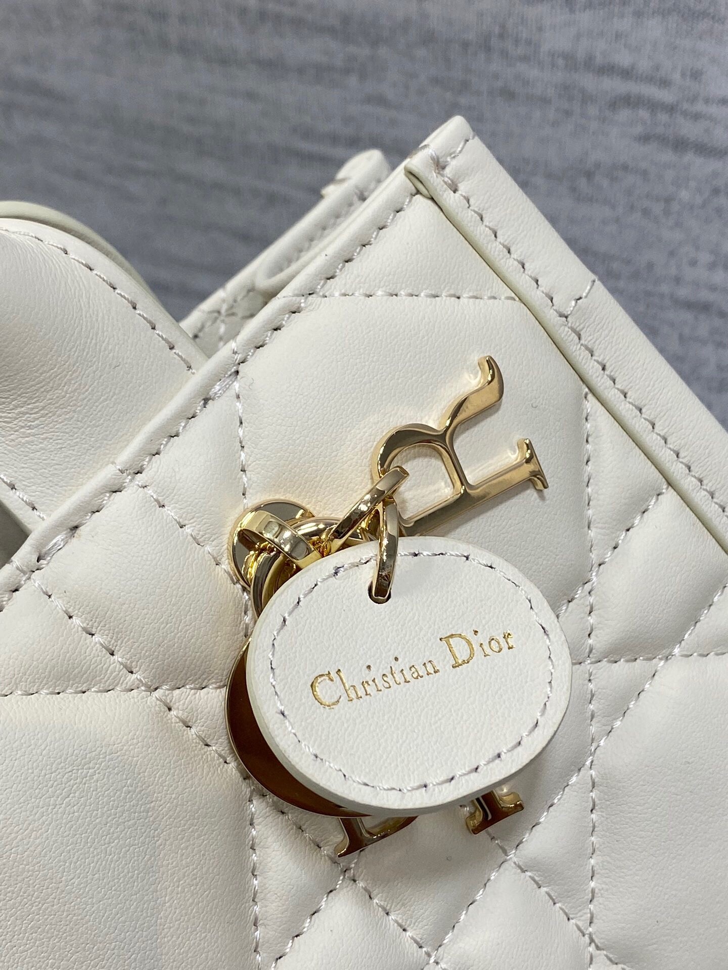 – Pale gold-finish metal D.I.O.R charms