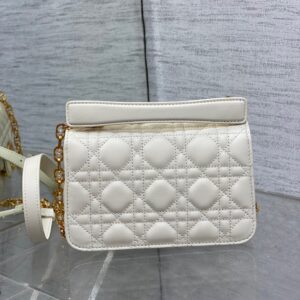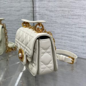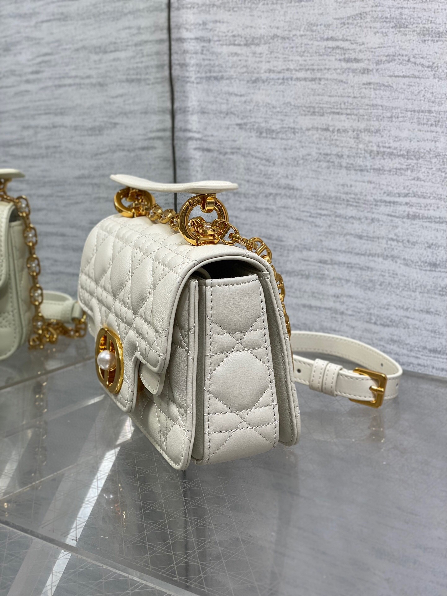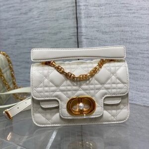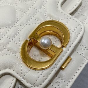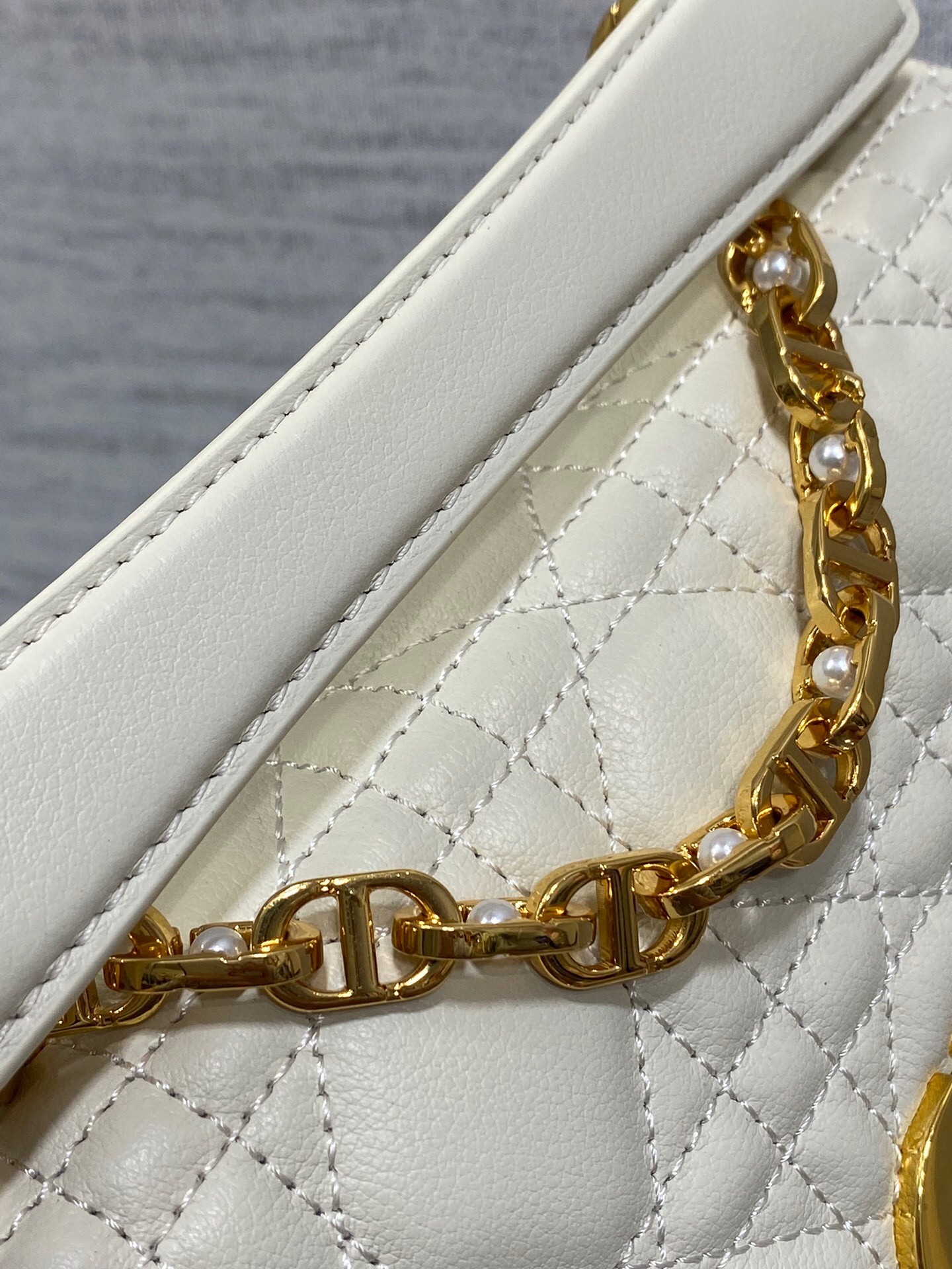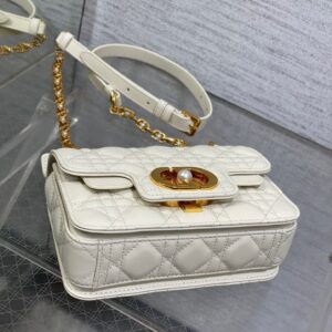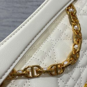 – Removable and adjustable chain shoulder strap with white resin pearls and leather insert