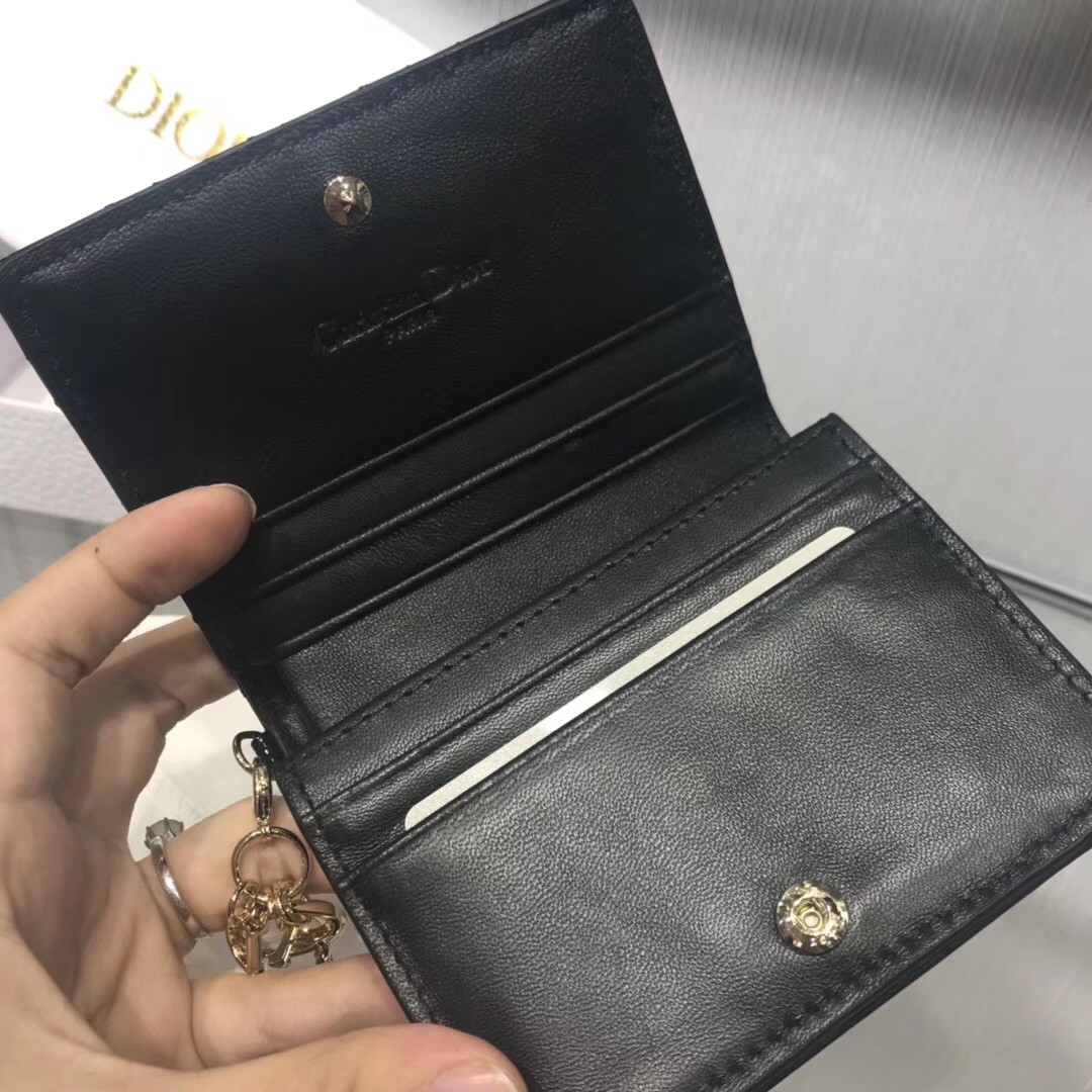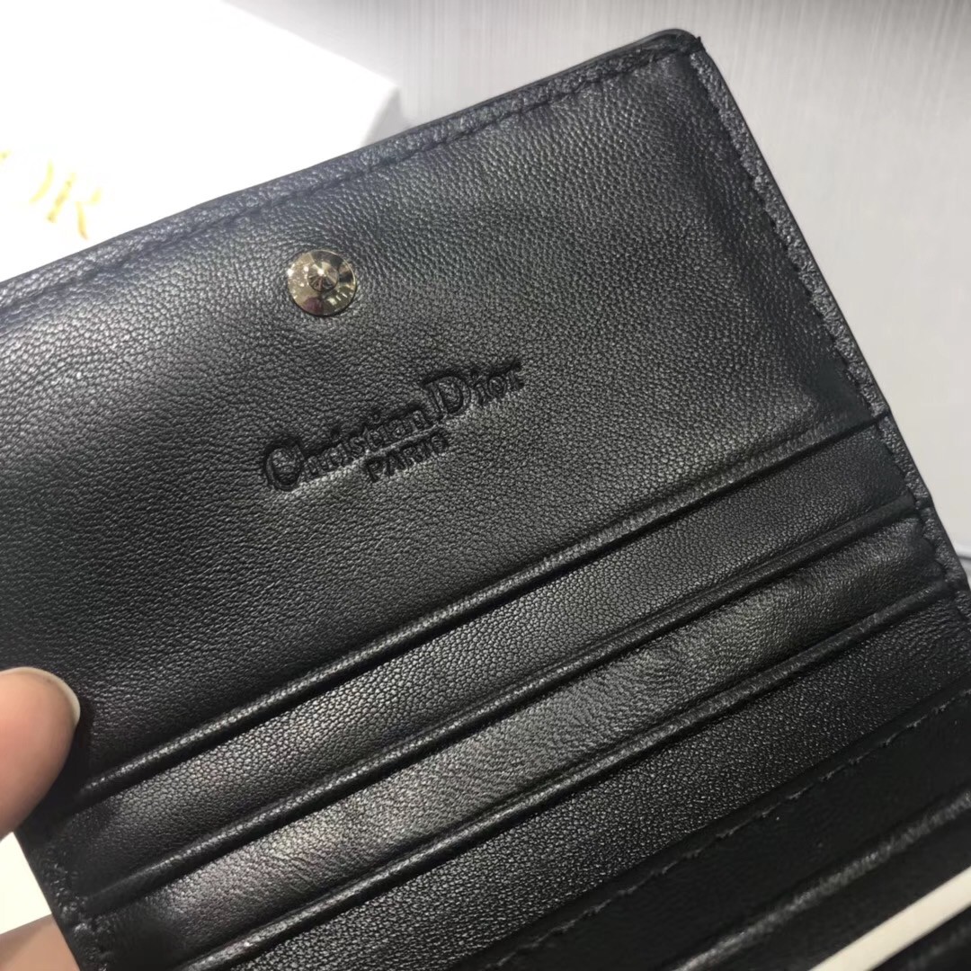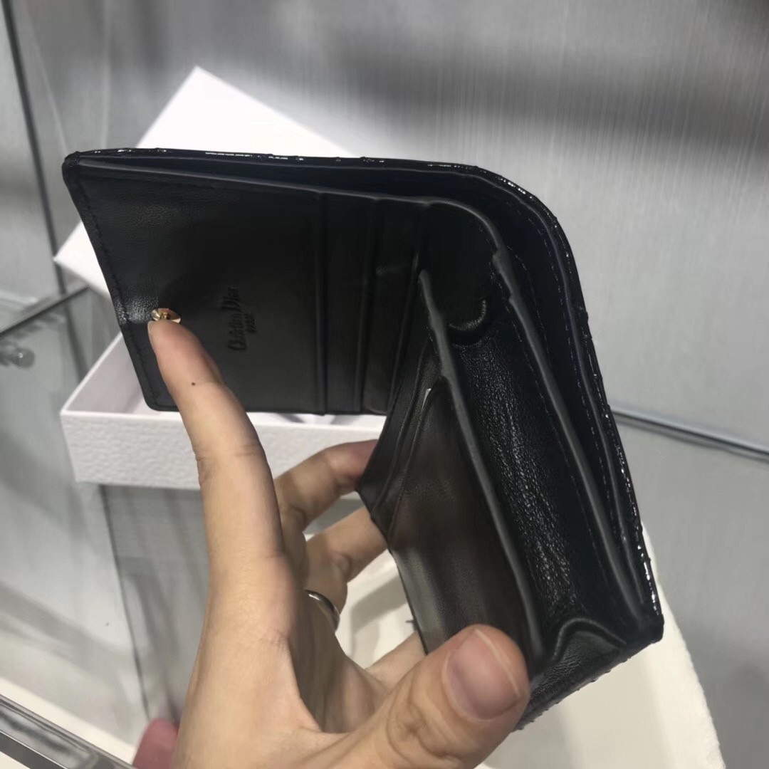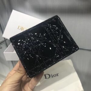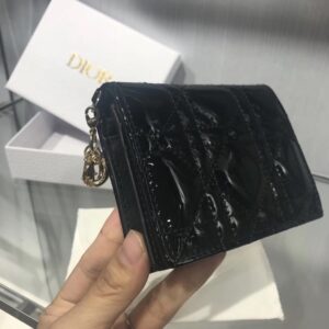 Dior Mini Lady Dior Wallet In Black Patent Leather