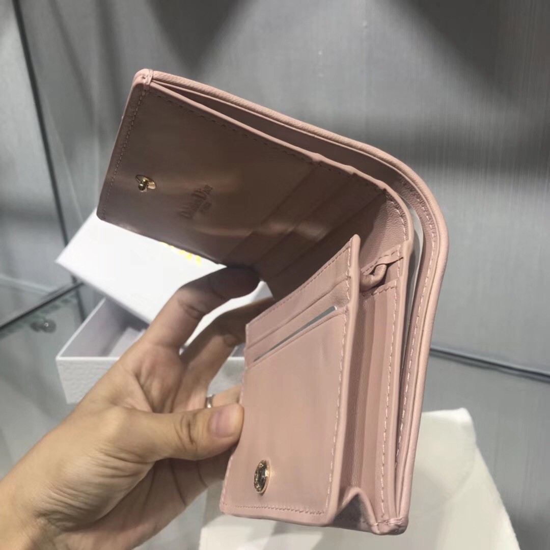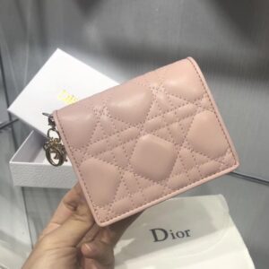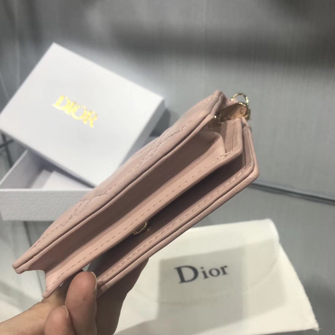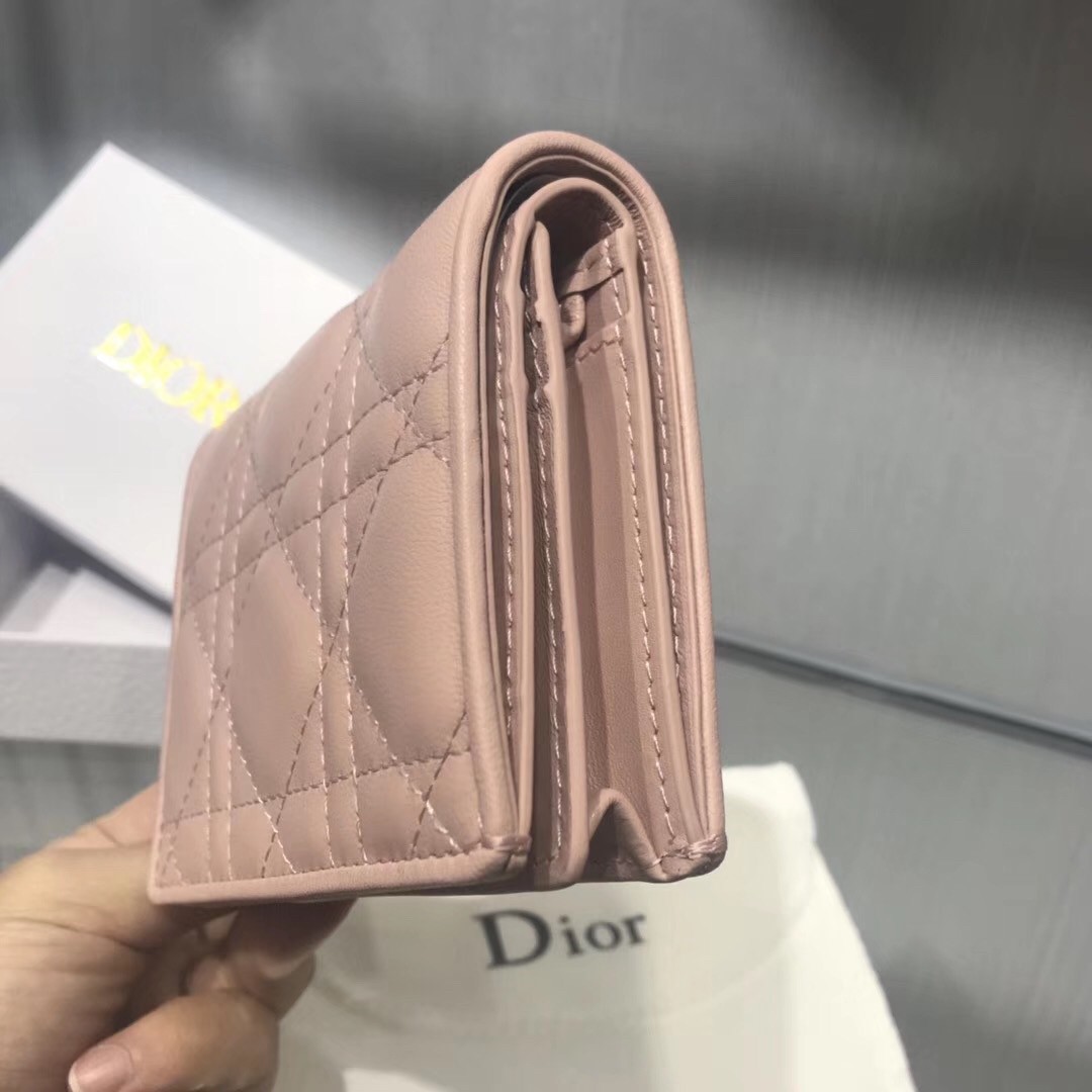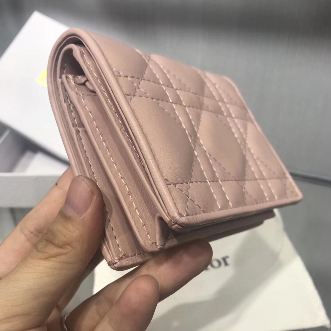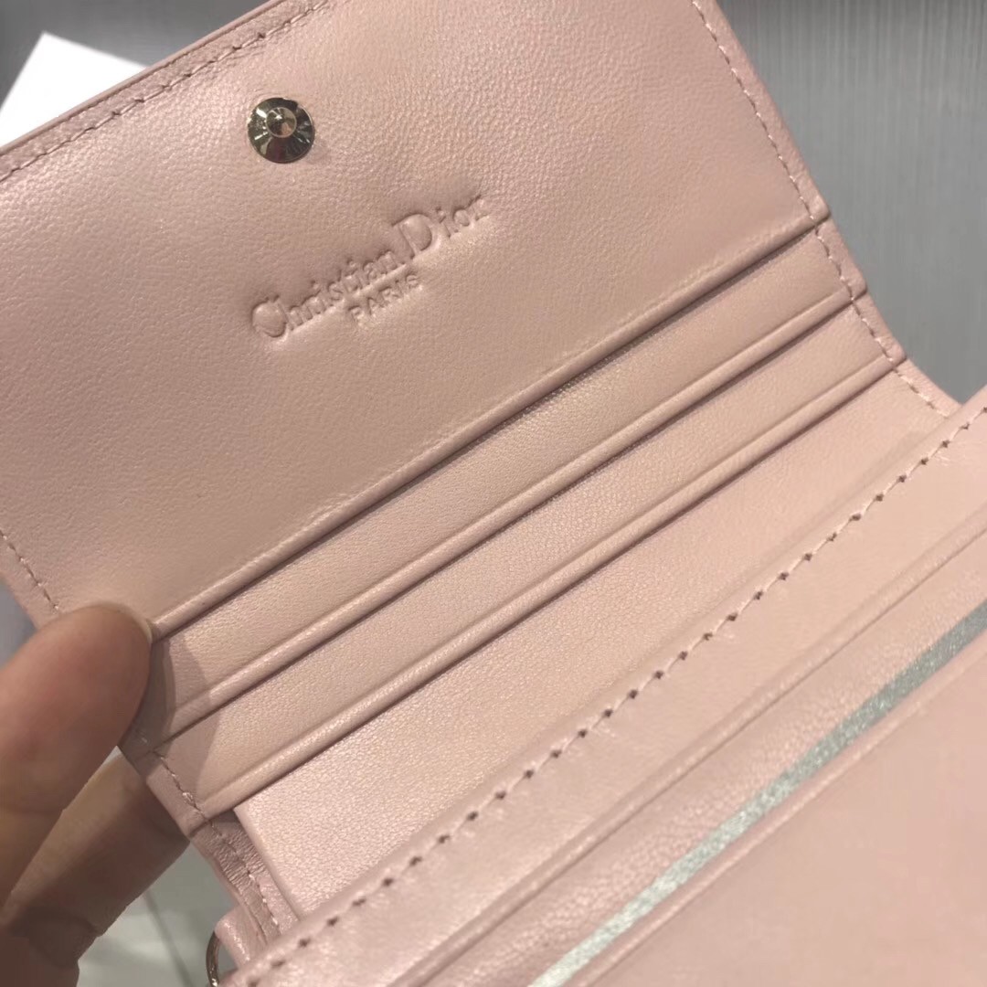 Dior Mini Lady Dior Wallet In Pink Lambskin