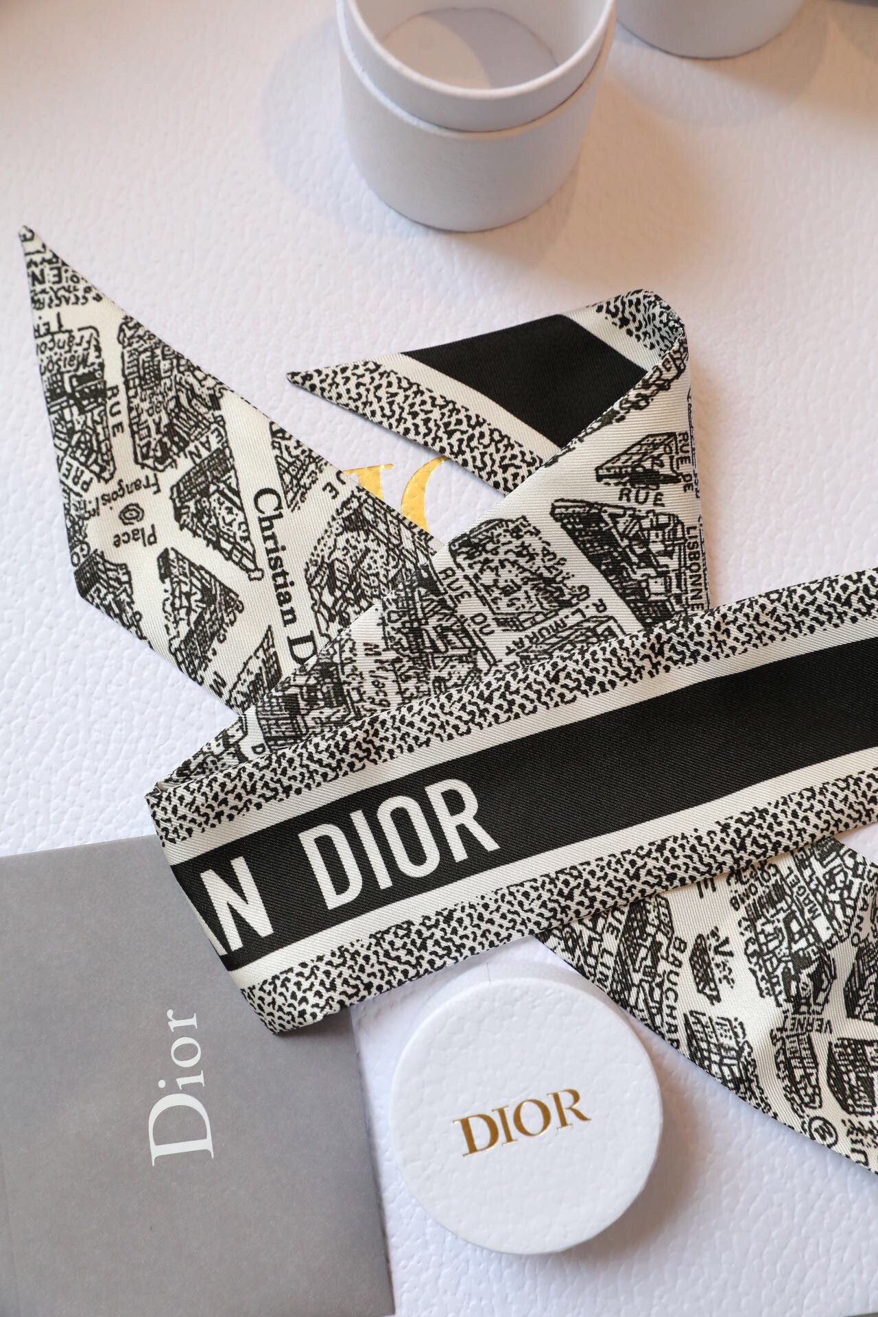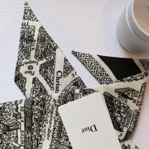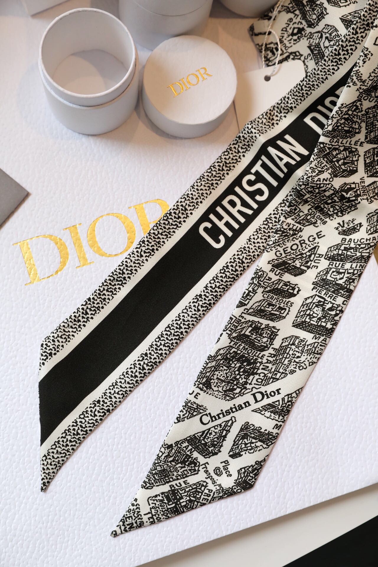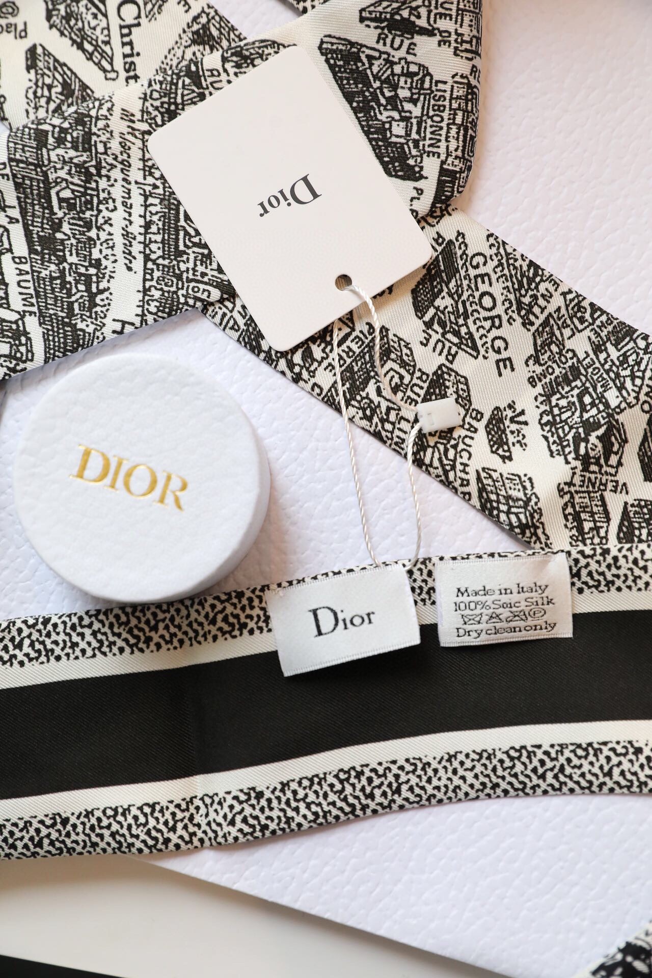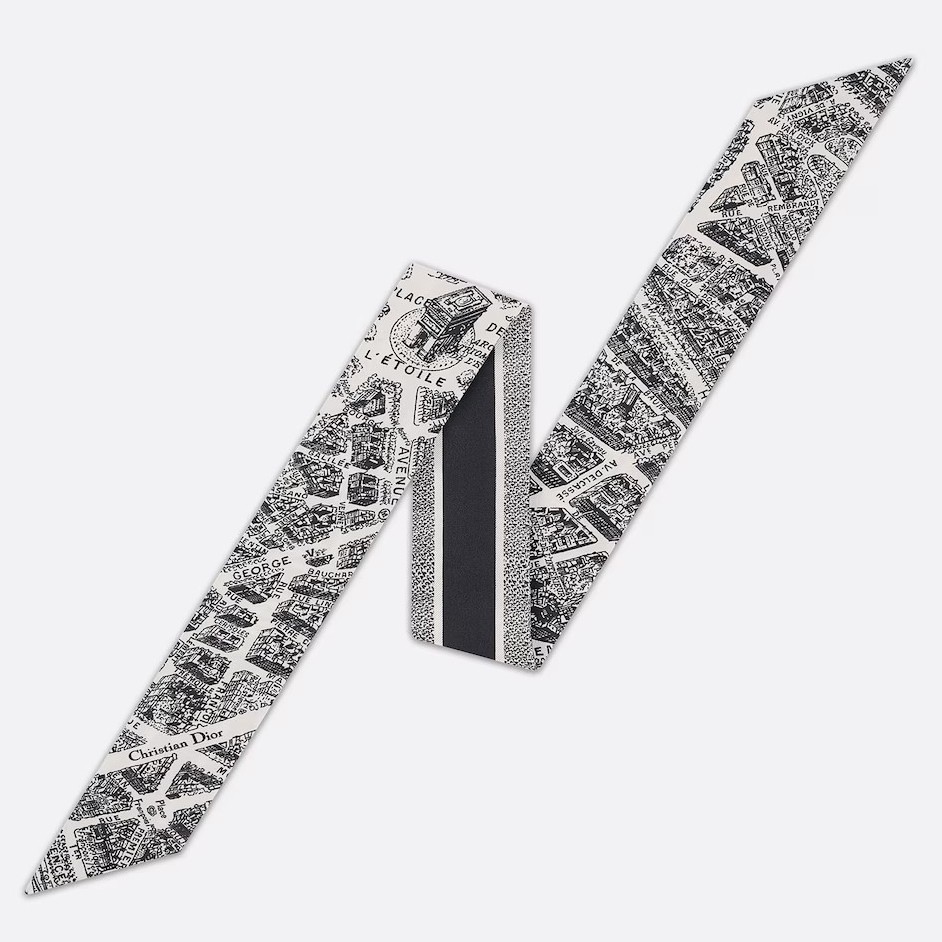 Dior Plan de Paris Mitzah Scarf in White and Black Silk Twill