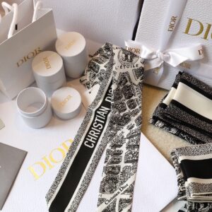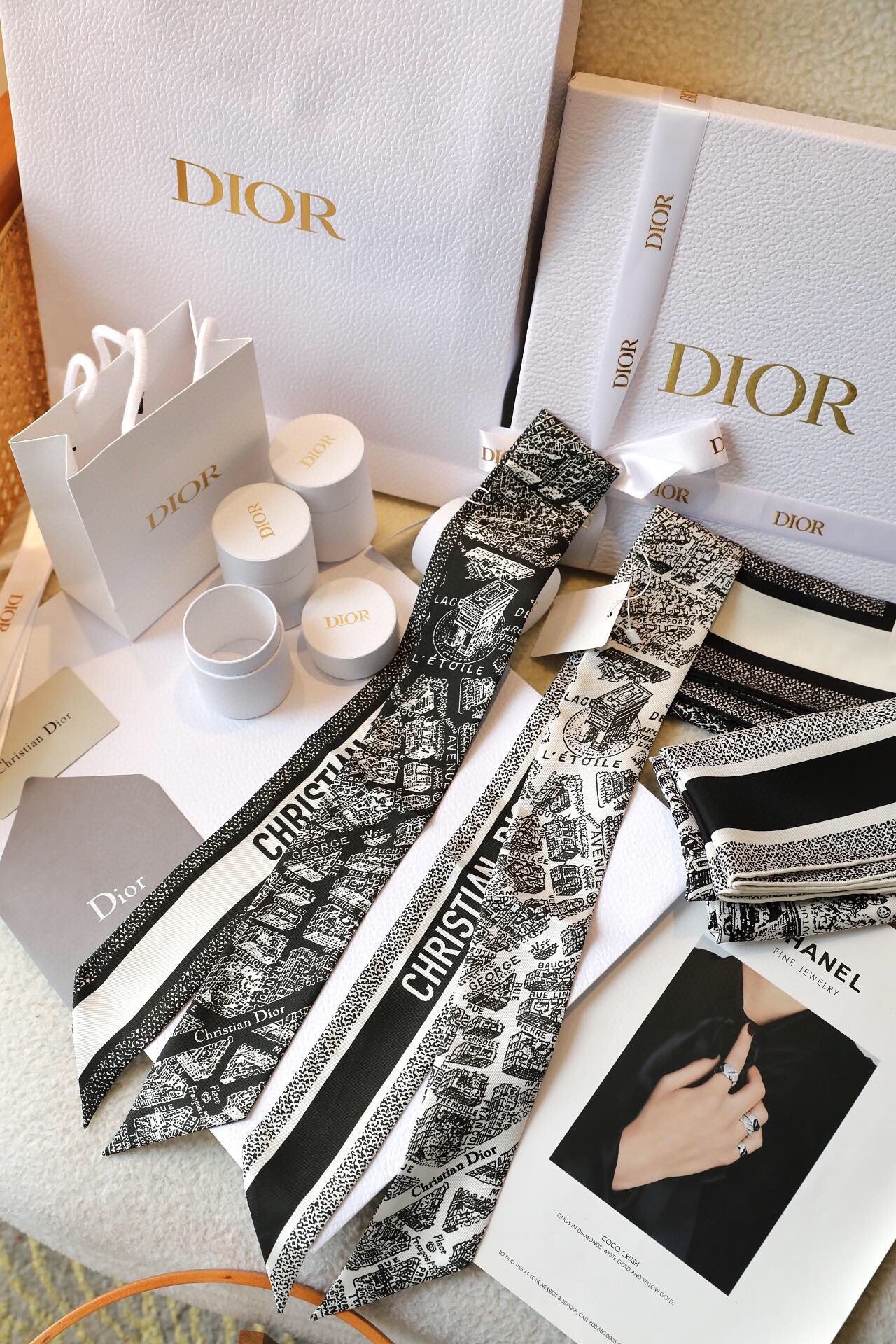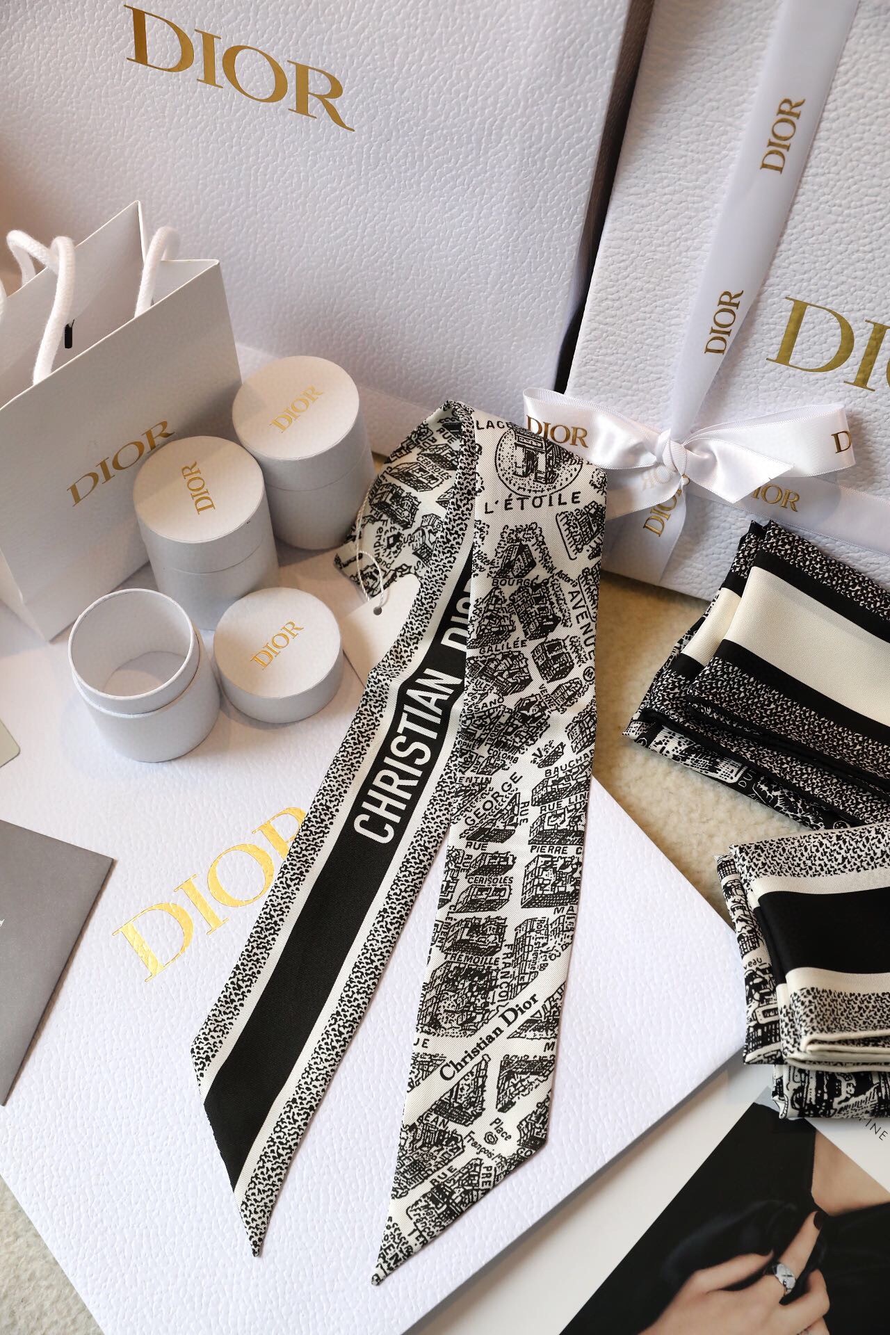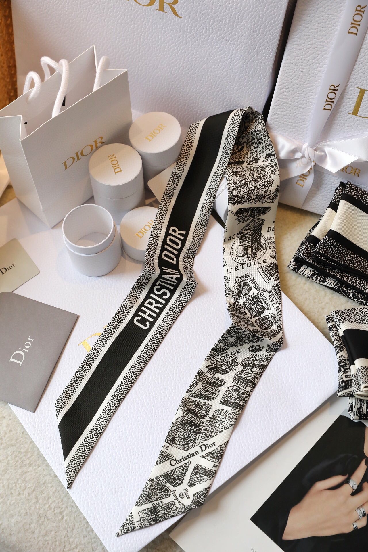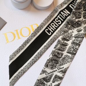 Dior Plan de Paris Mitzah Scarf in White and Black Silk Twill