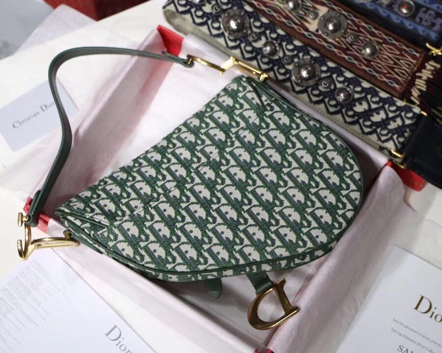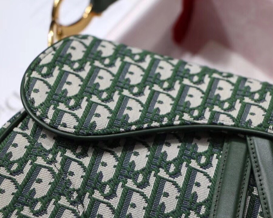 Dior Saddle Bag In Green Oblique Jacquard Canvas