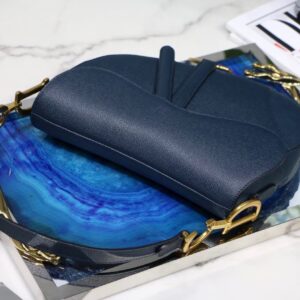 Dior Saddle Bag In Navy Blue Grained Calfskin