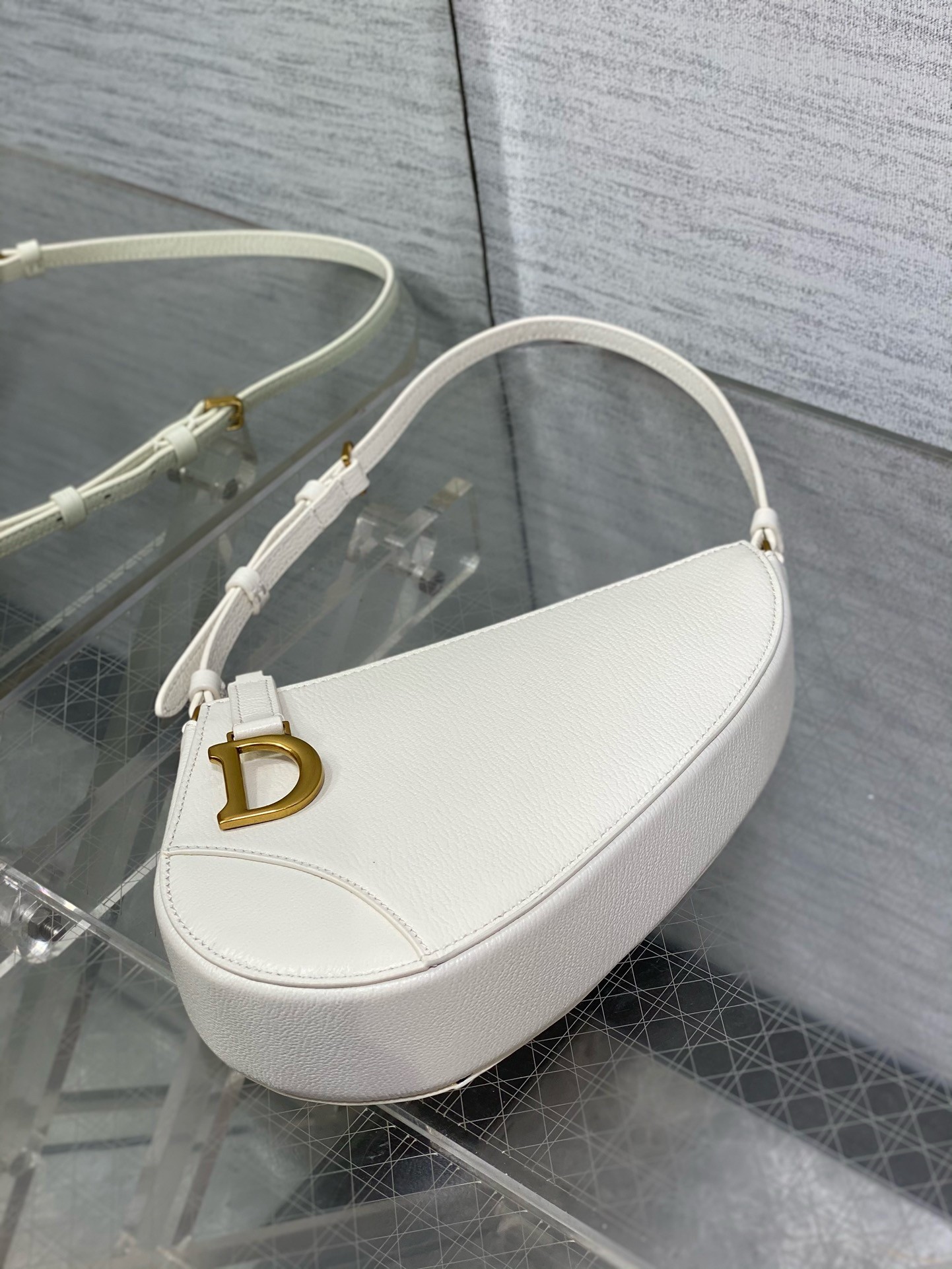 Dior Saddle Rodeo Pouch in White Goatskin