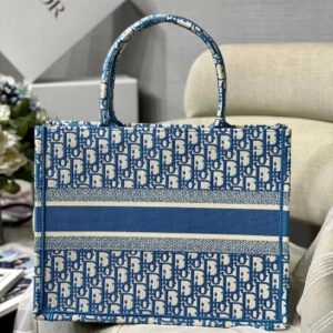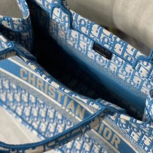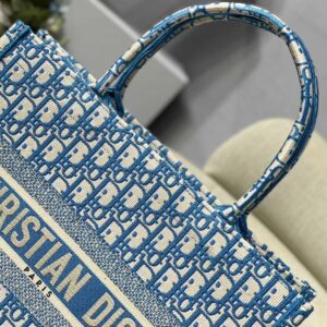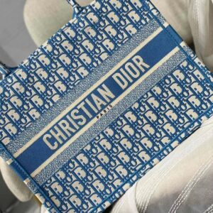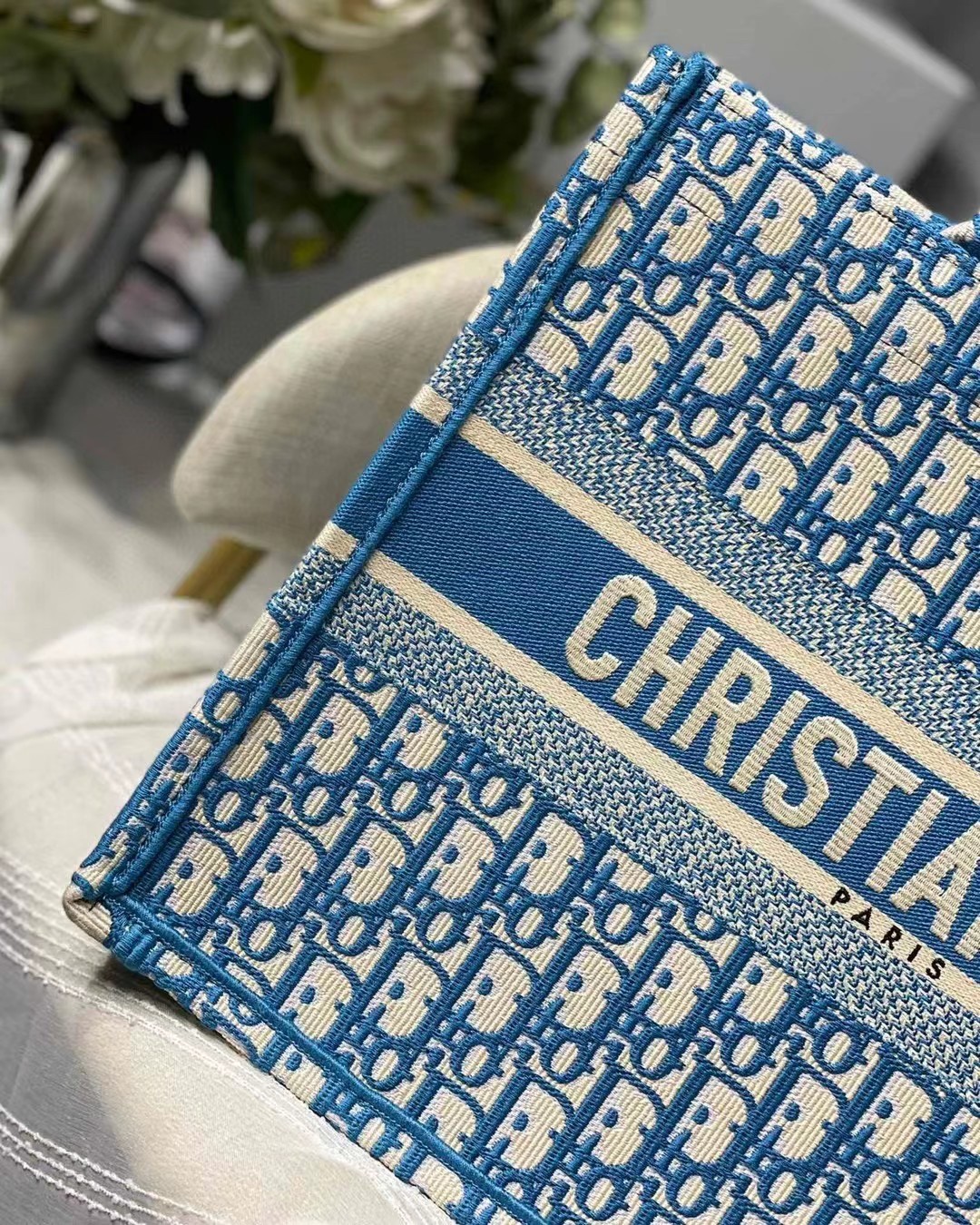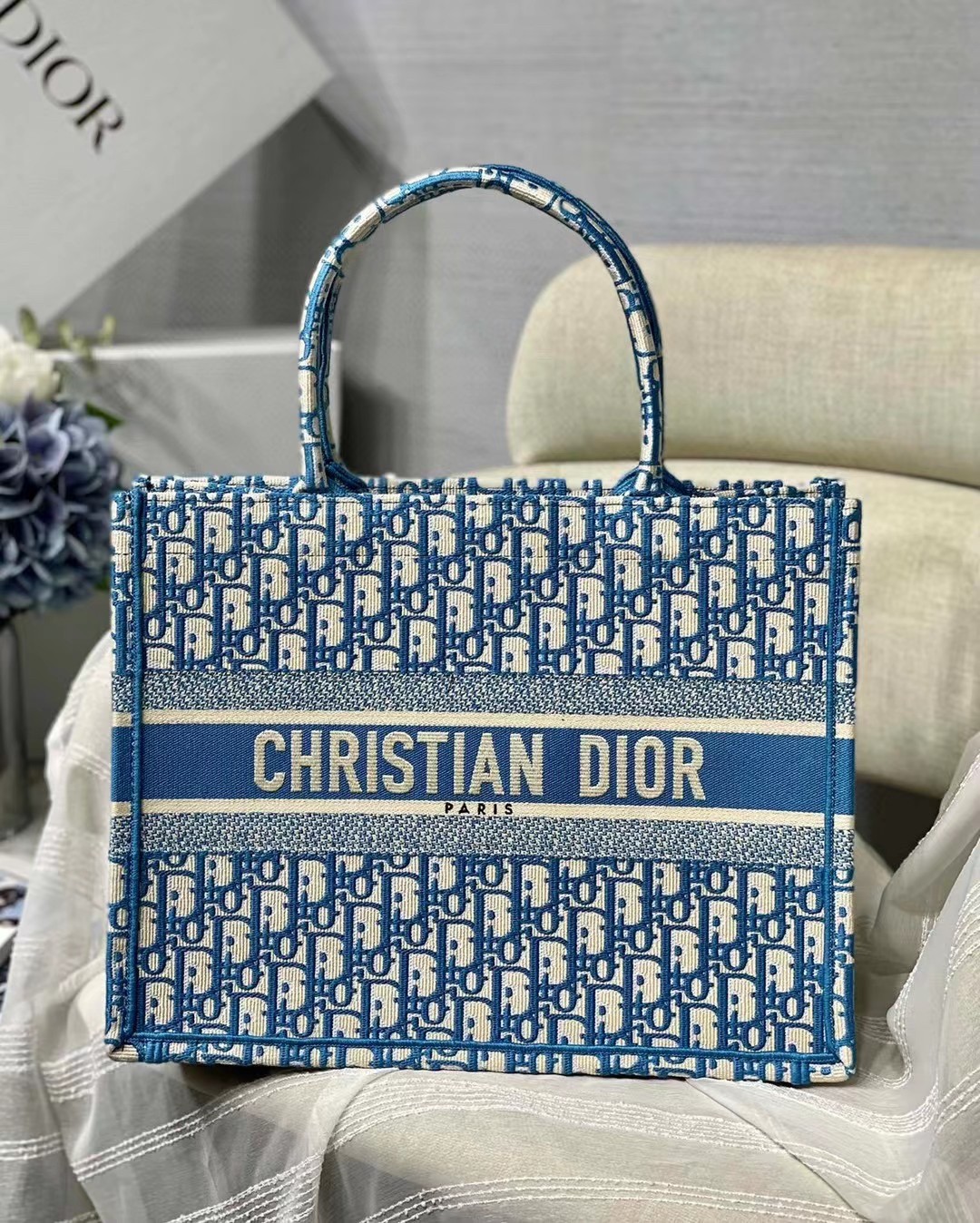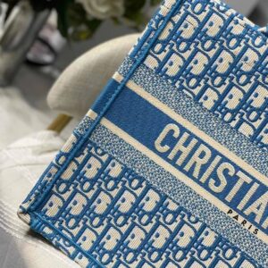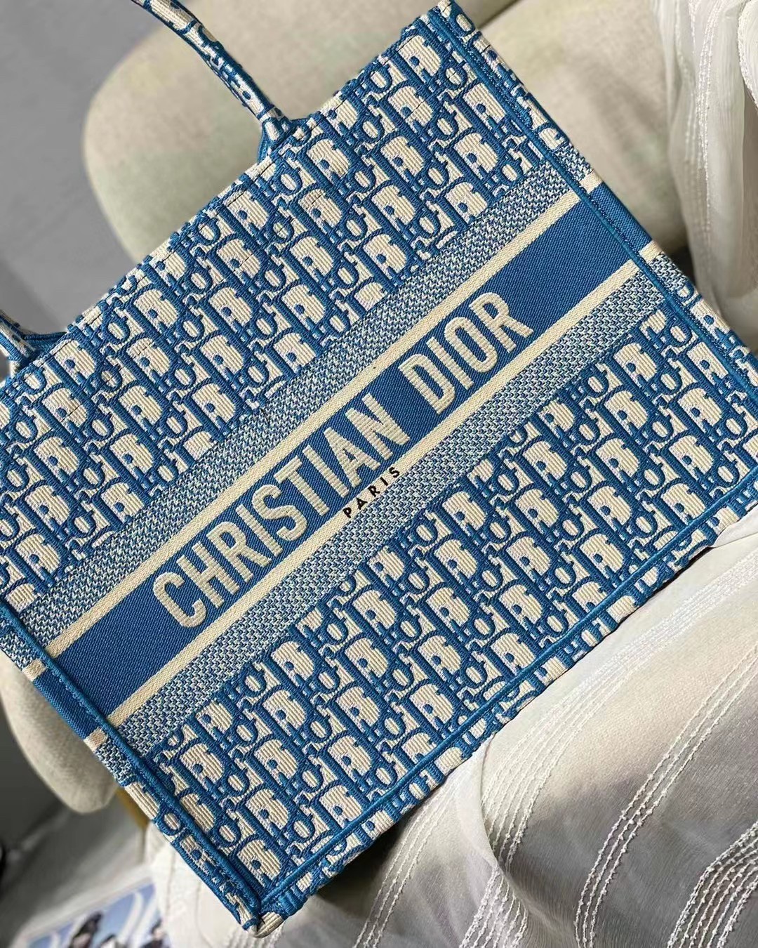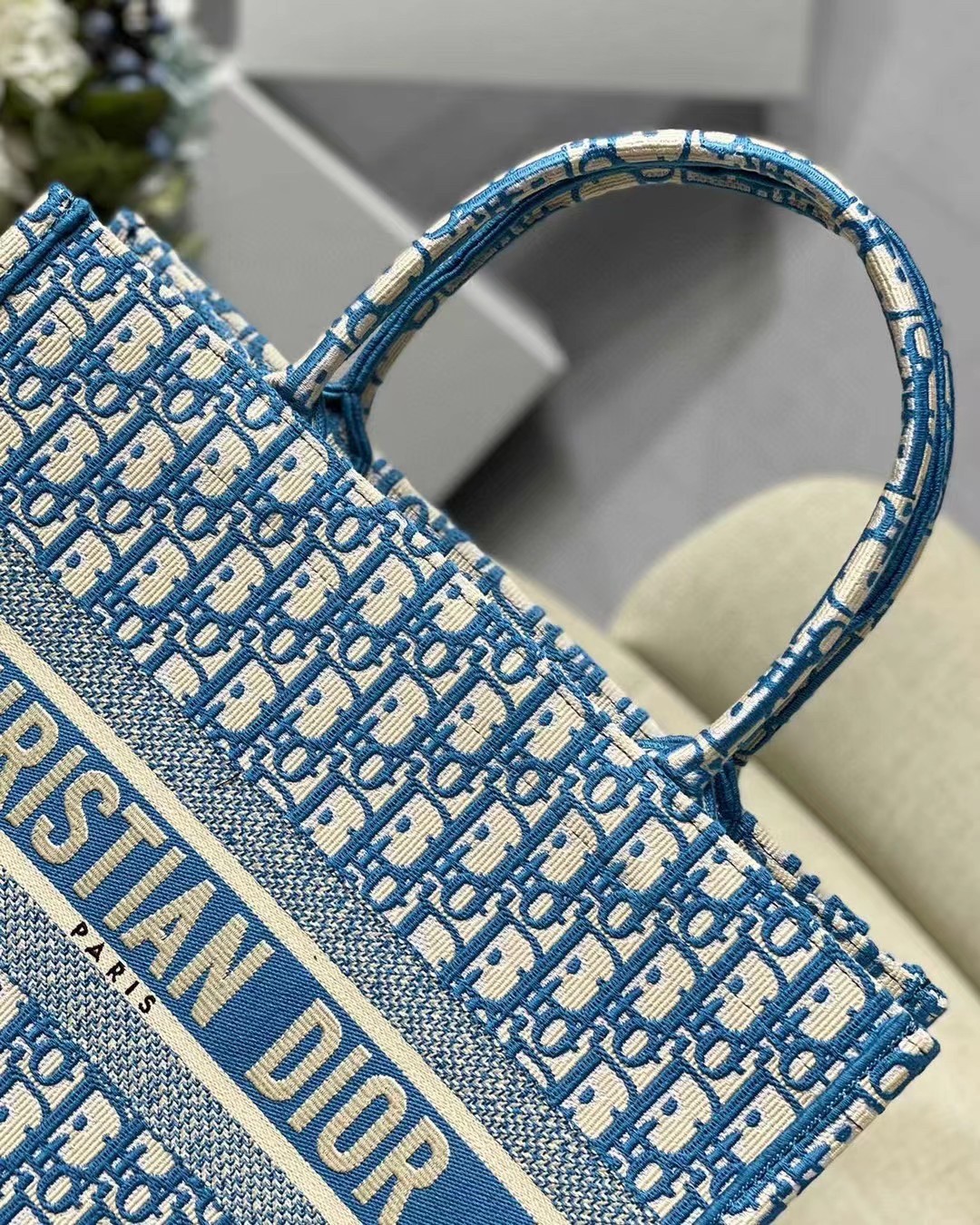 Dior Small Book Tote In Cornflower Blue Dior Oblique Embroidery