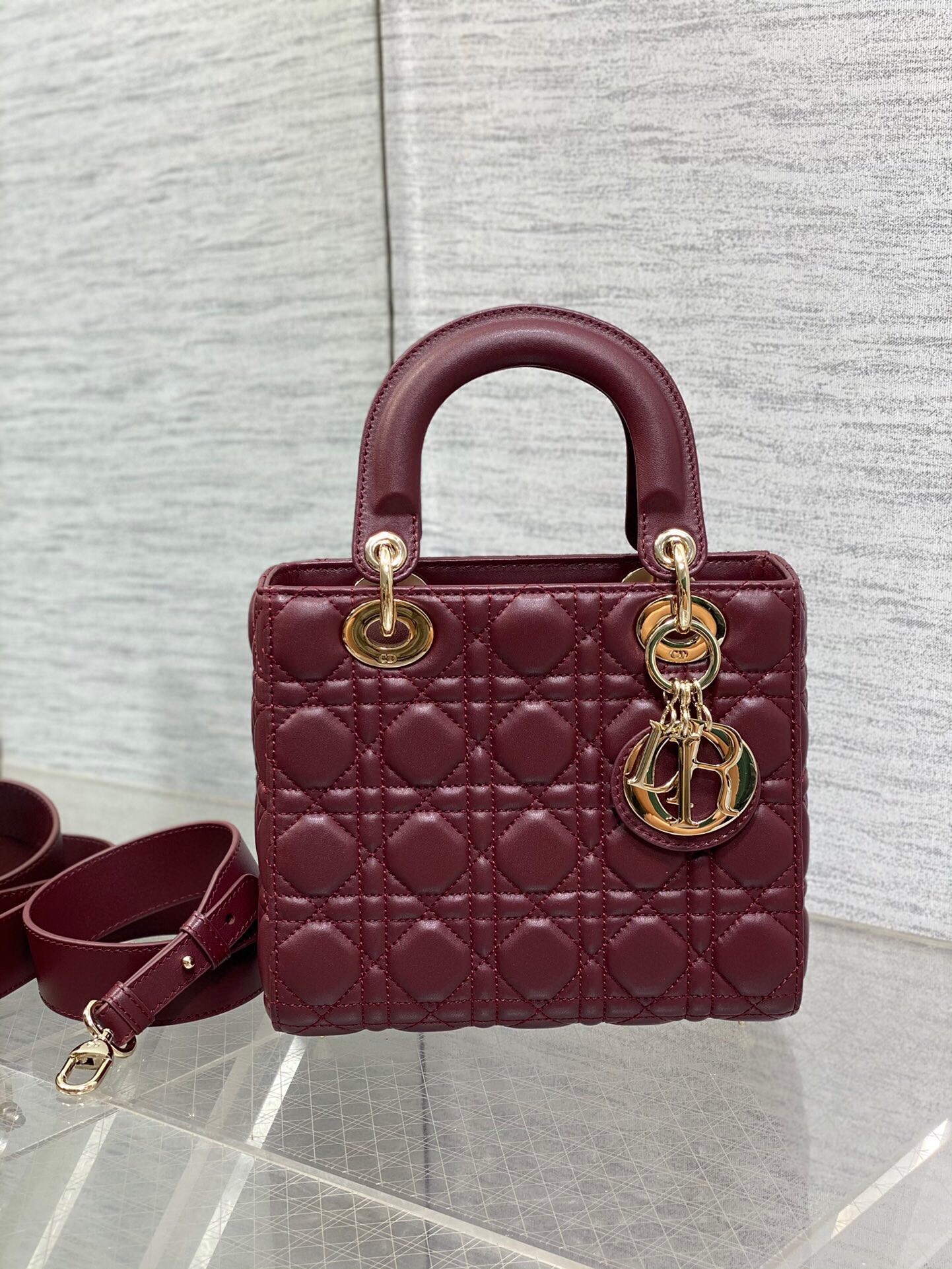 Dior Small Lady Dior My ABCDior Bag in Burgundy Lambskin