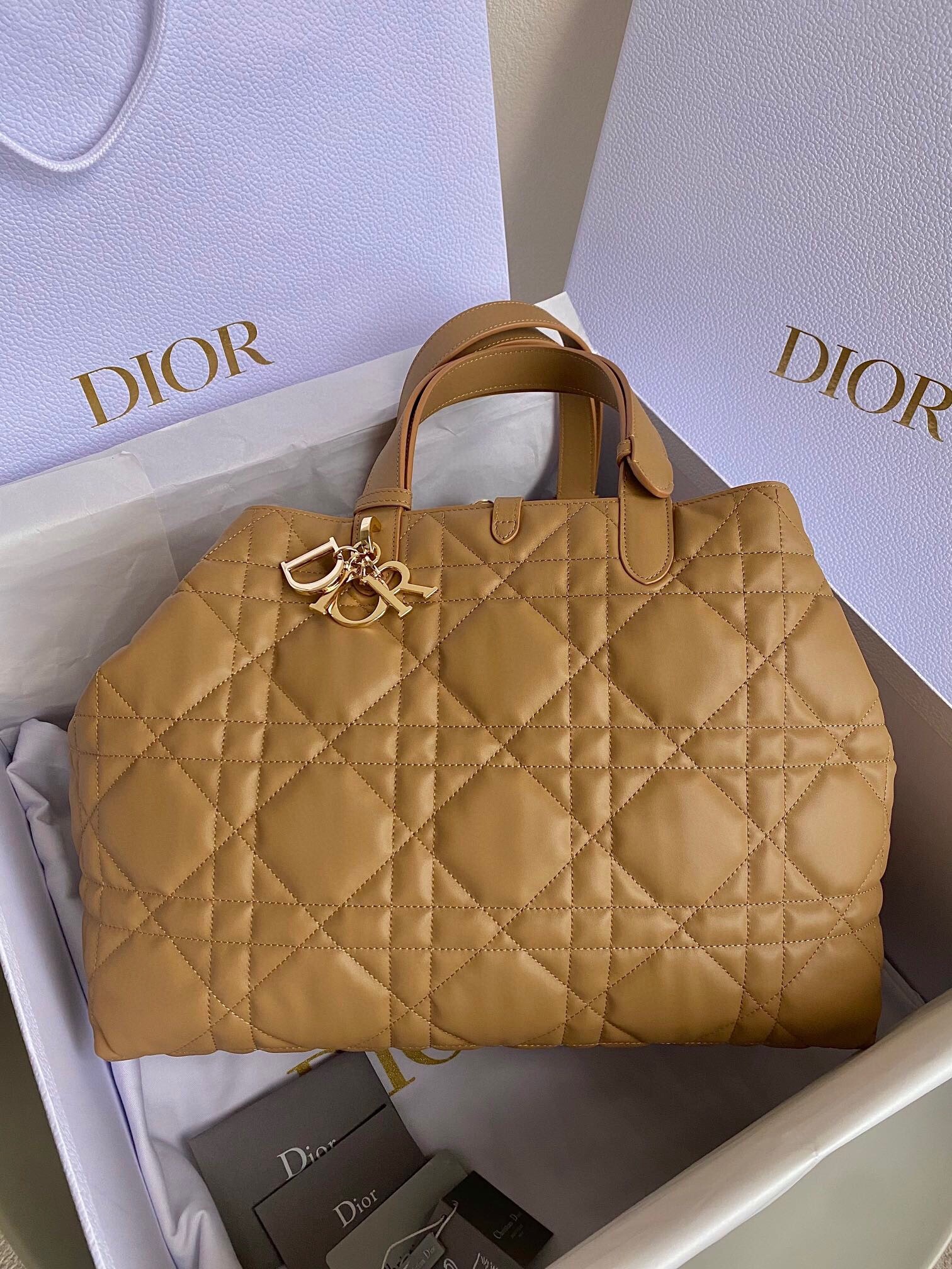 Dior Toujours Large Bag in Brown Macrocannage Calfskin