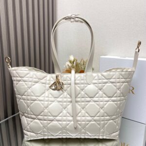 Dior Toujours Large Bag in White Macrocannage Calfskin