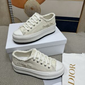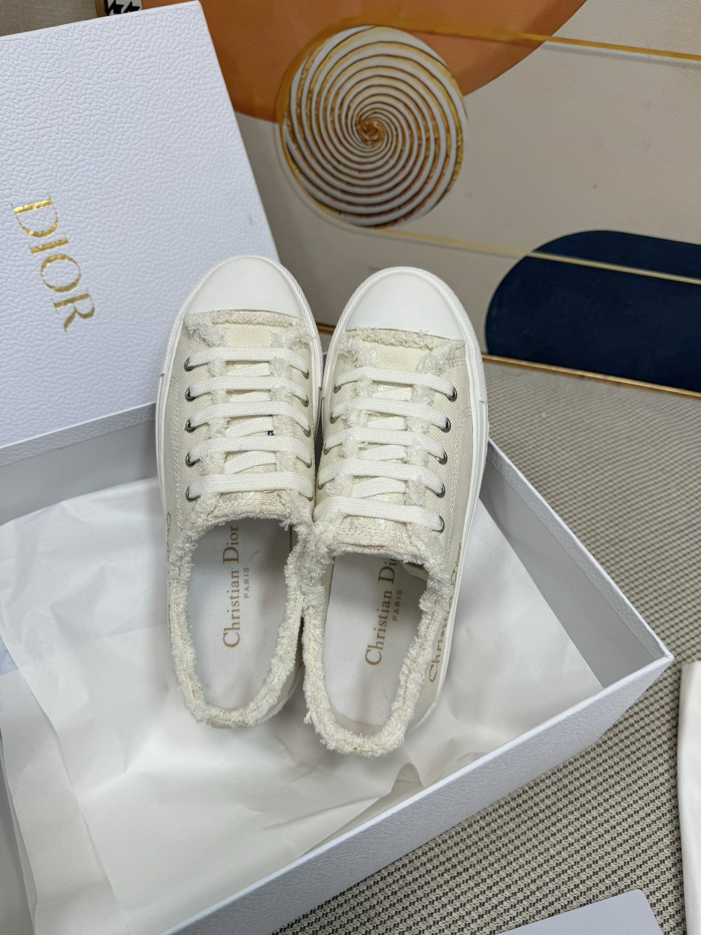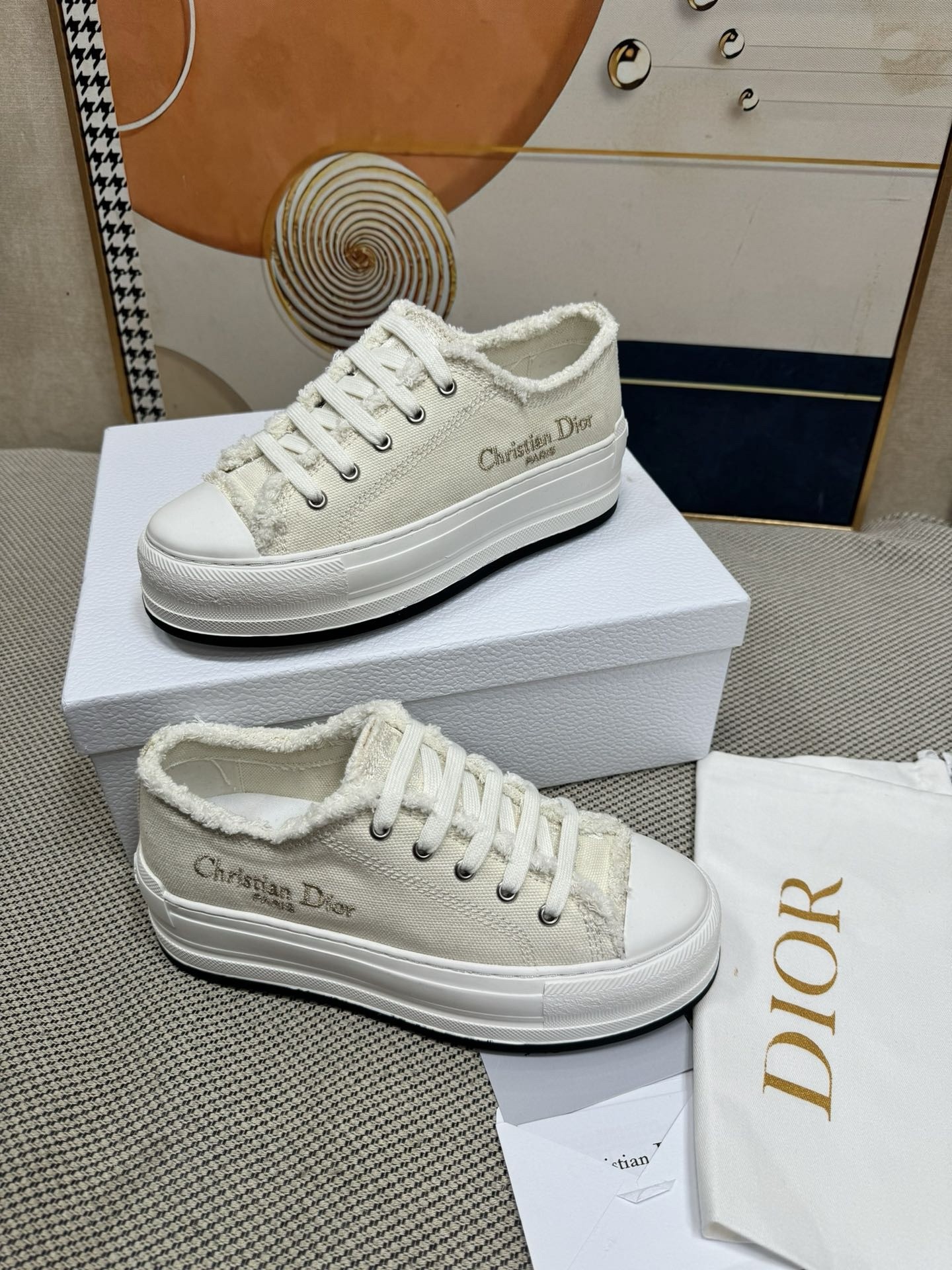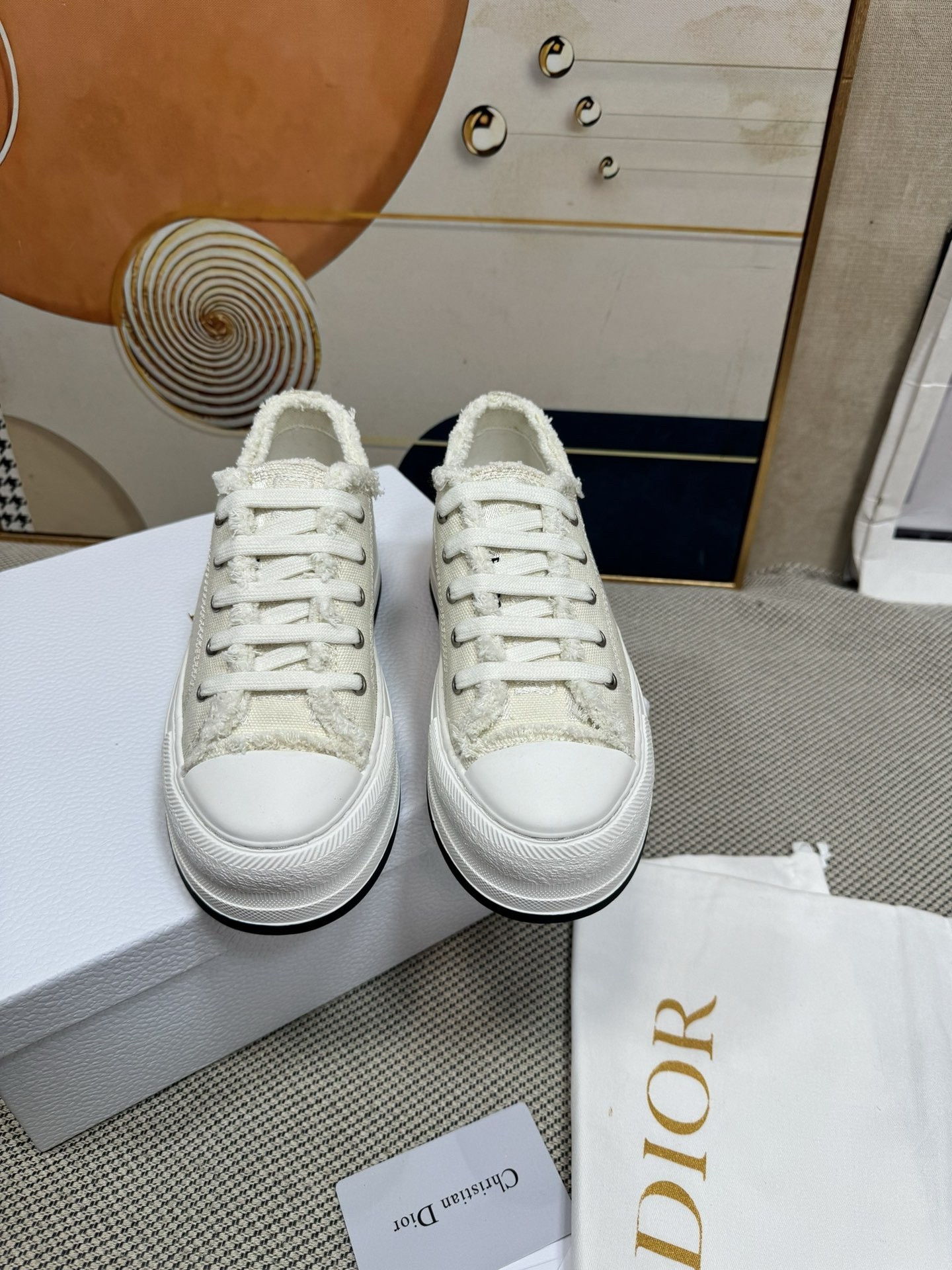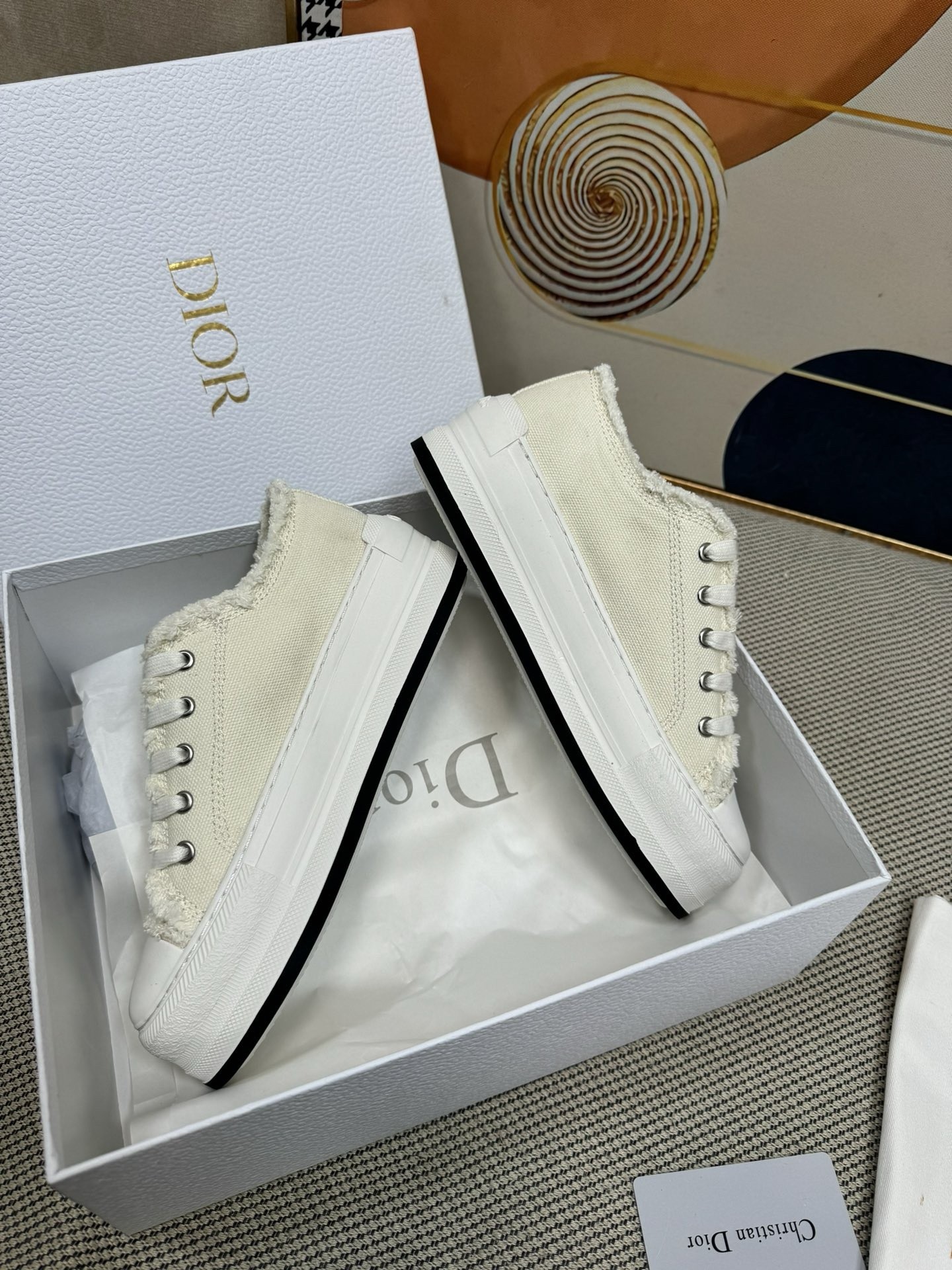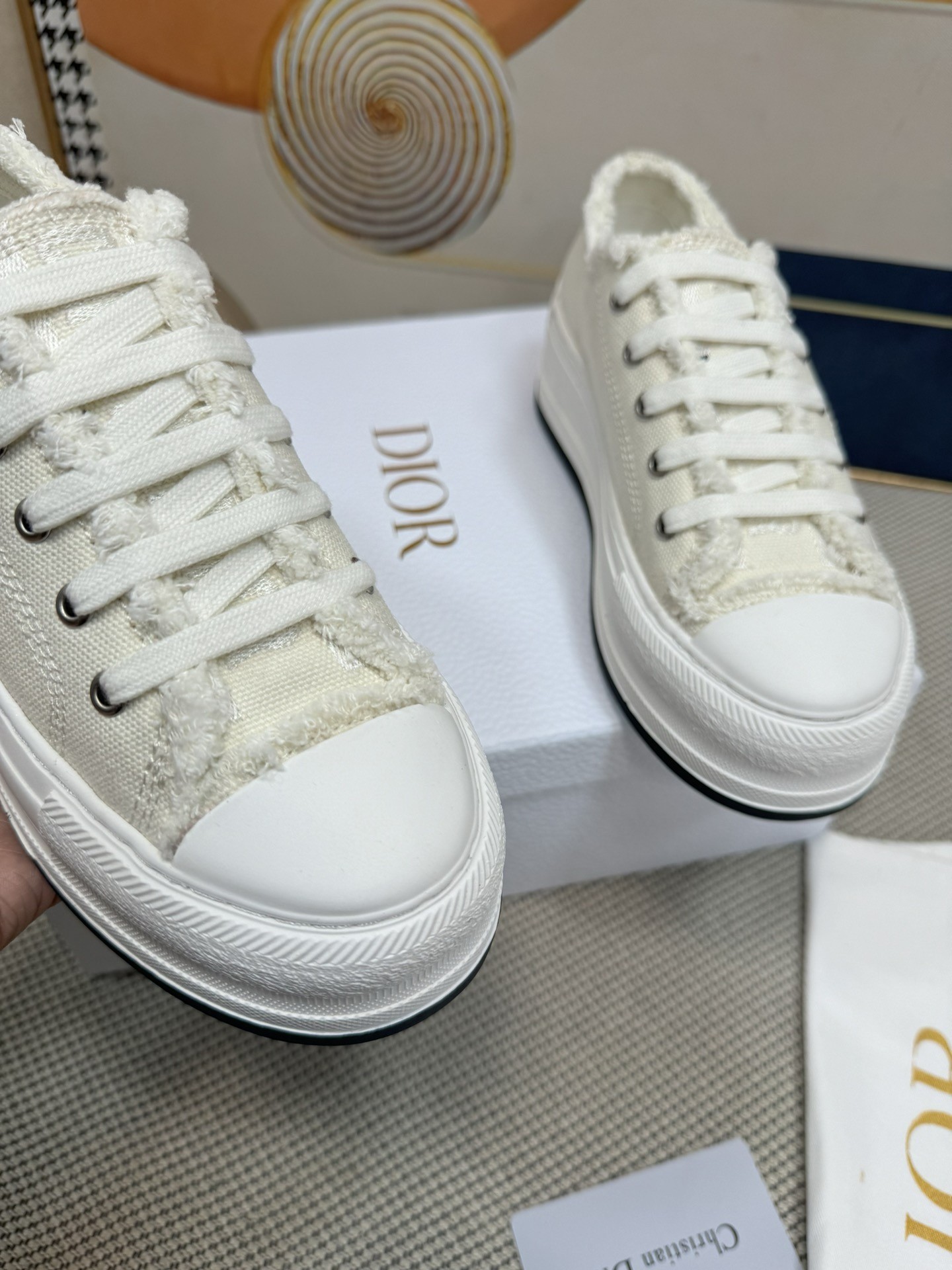 Dior Walk’n’Dior Platform Sneakers in Ecru Fringed Cotton Canvas