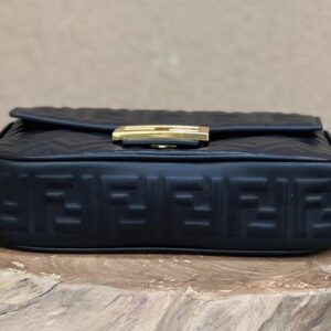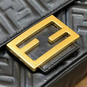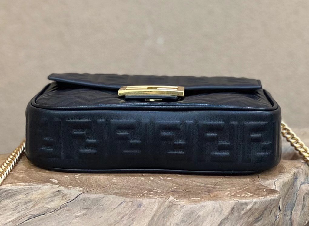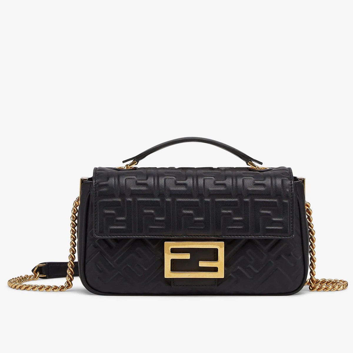 Fendi Baguette Chain Midi Bag In Black Nappa Leather