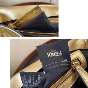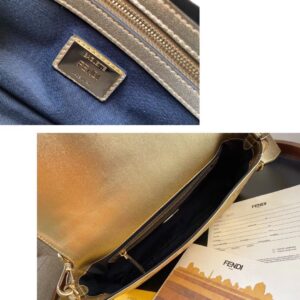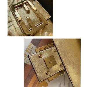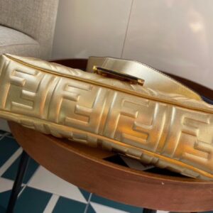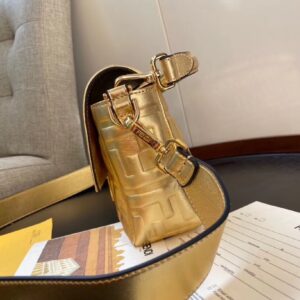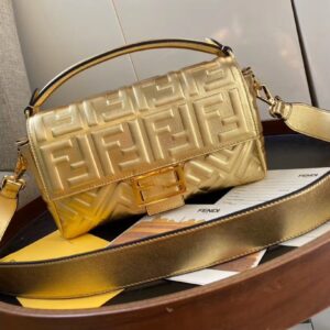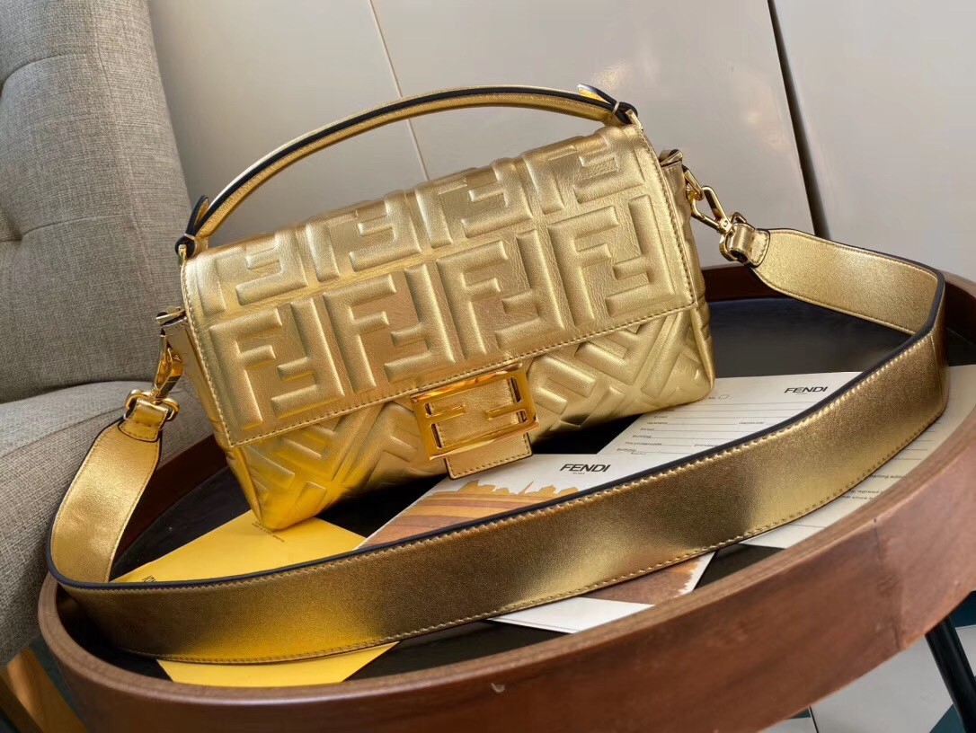 Fendi Baguette Medium Bag In Gold Lambskin With FF Motif