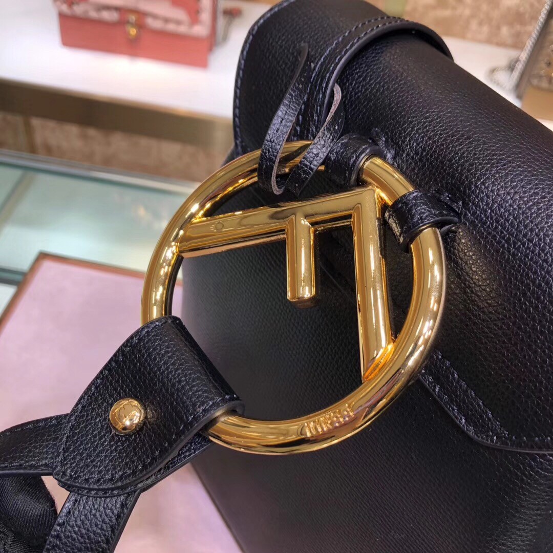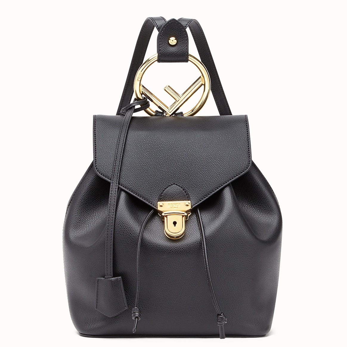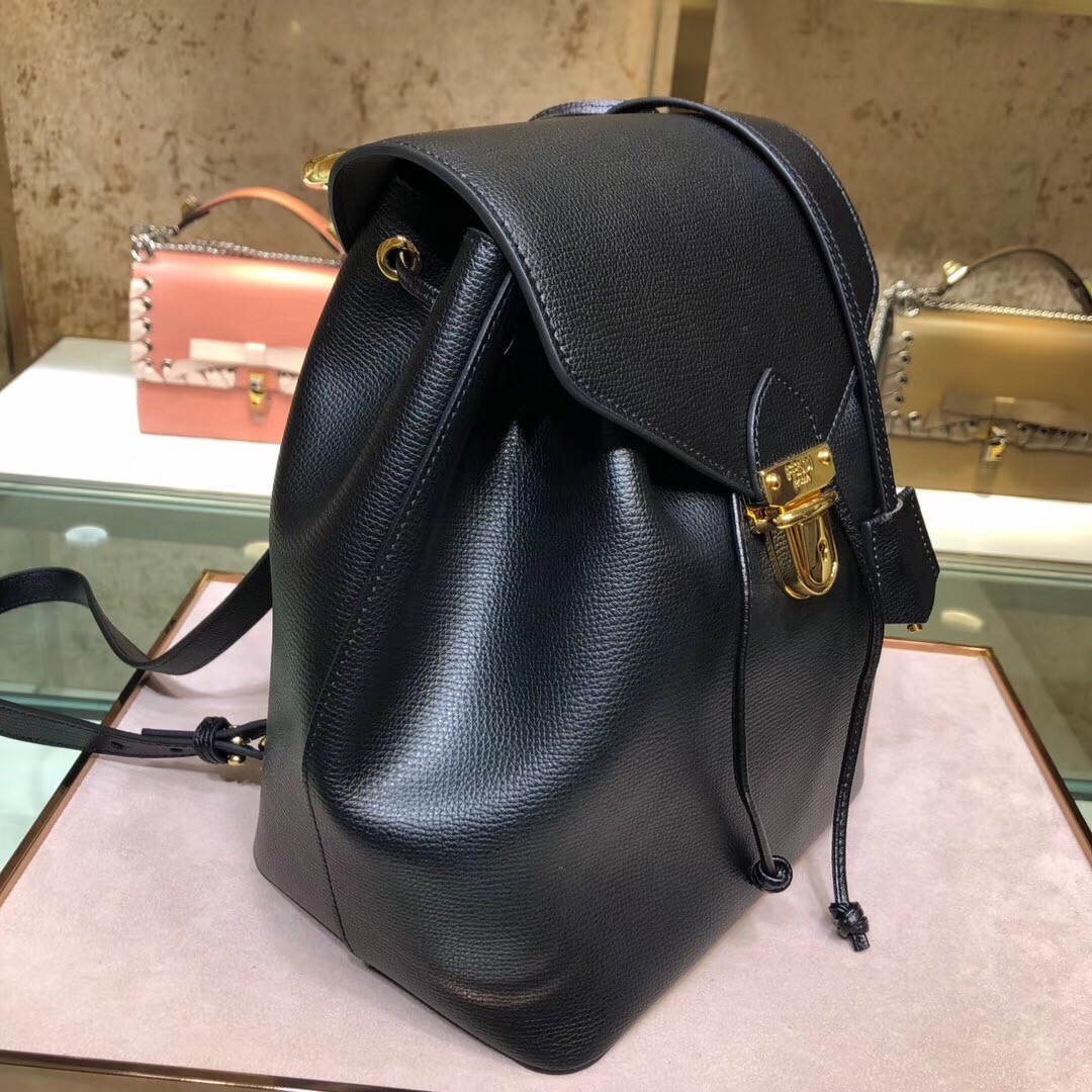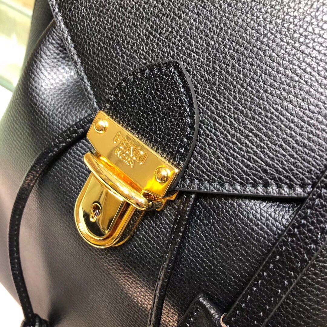 Fendi Black Leather Logo Backpack