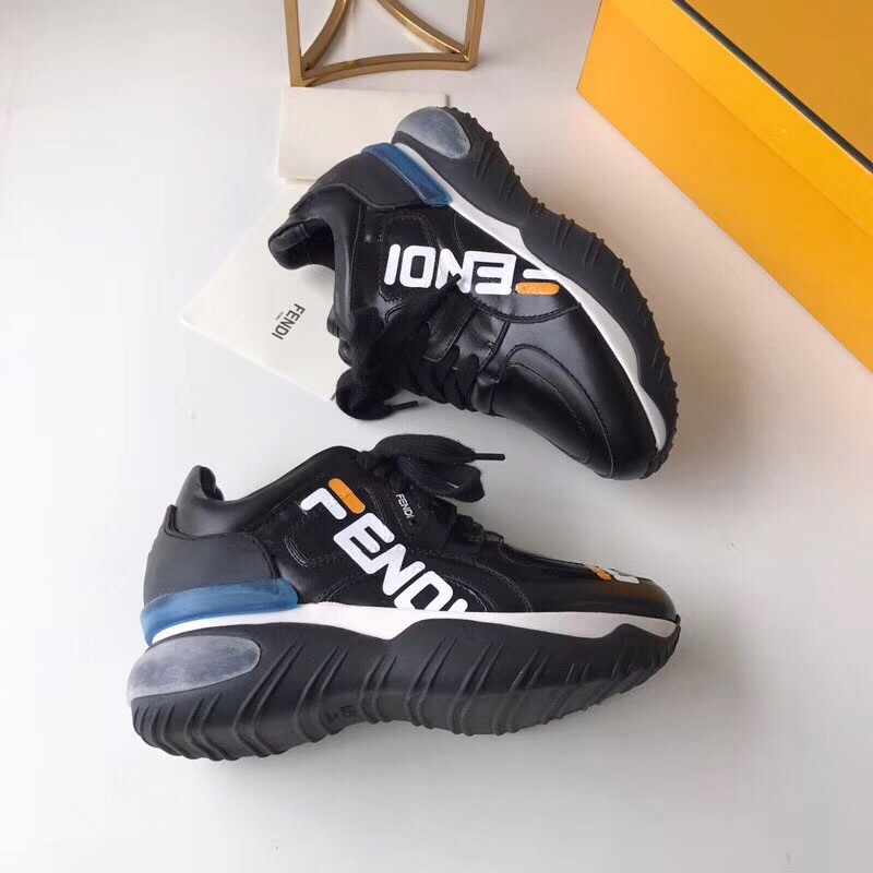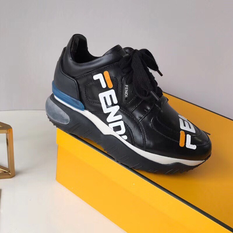 Fendi Black Logo-print Leather Sneakers