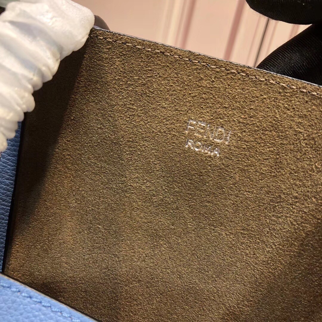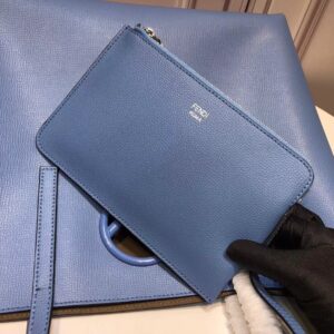 Fendi Blue Leather Logo Shopper Bag