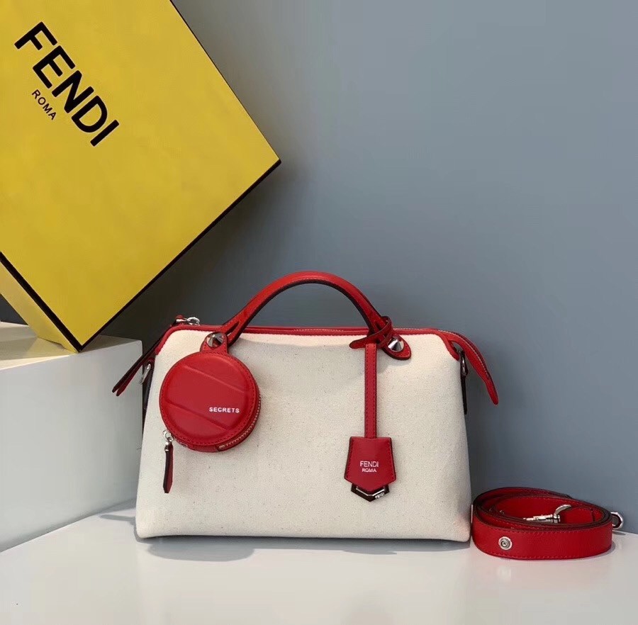 Fendi By The Way Medium Bag In Canvas With Red Leather