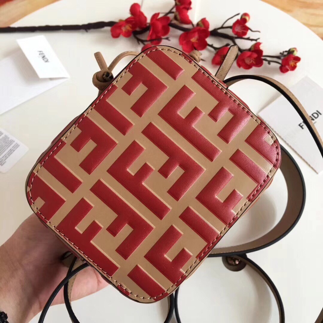 Fendi FF Mon Tresor Mini Bucket Bag In Beige Calfskin