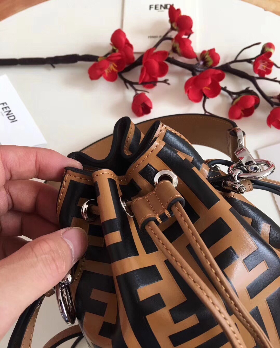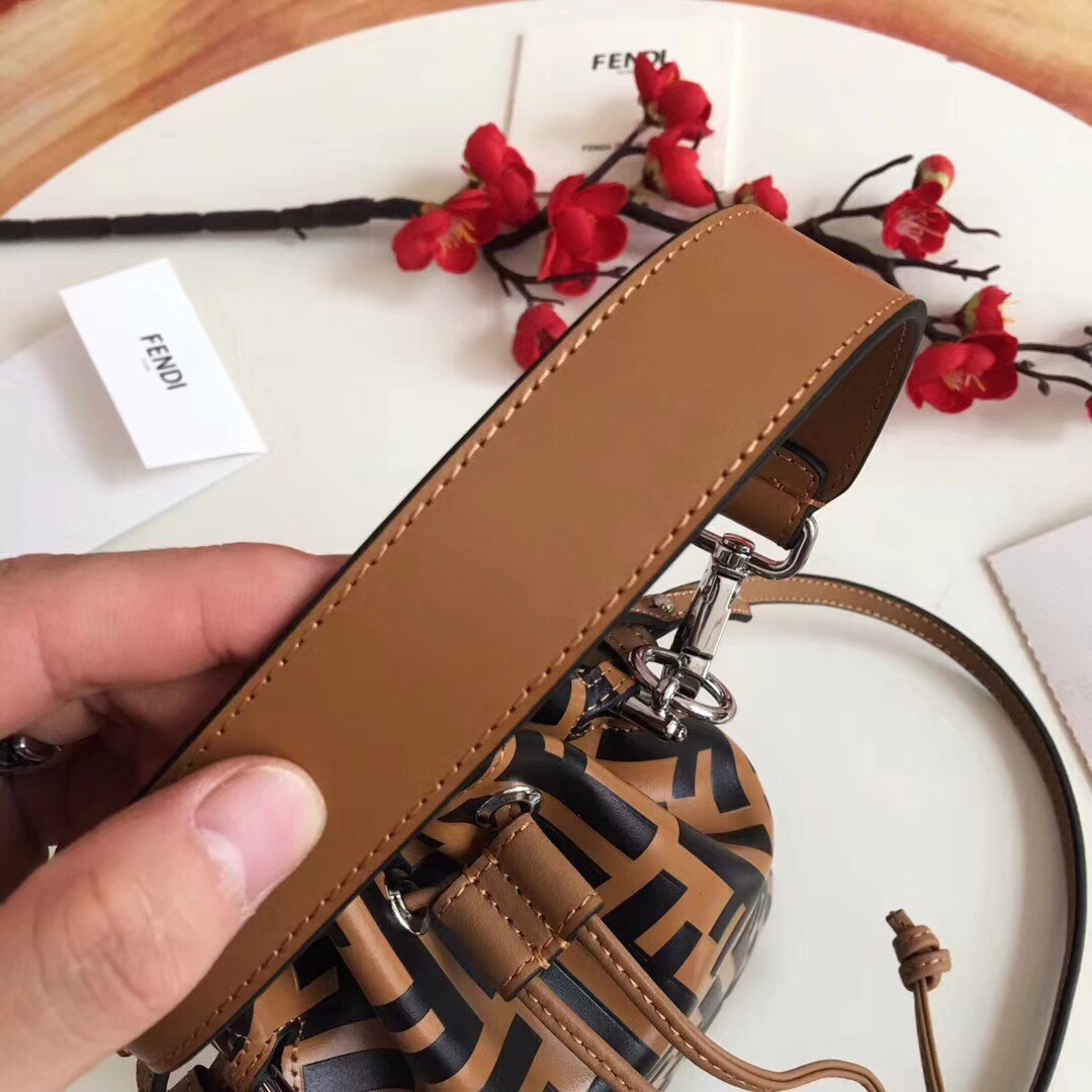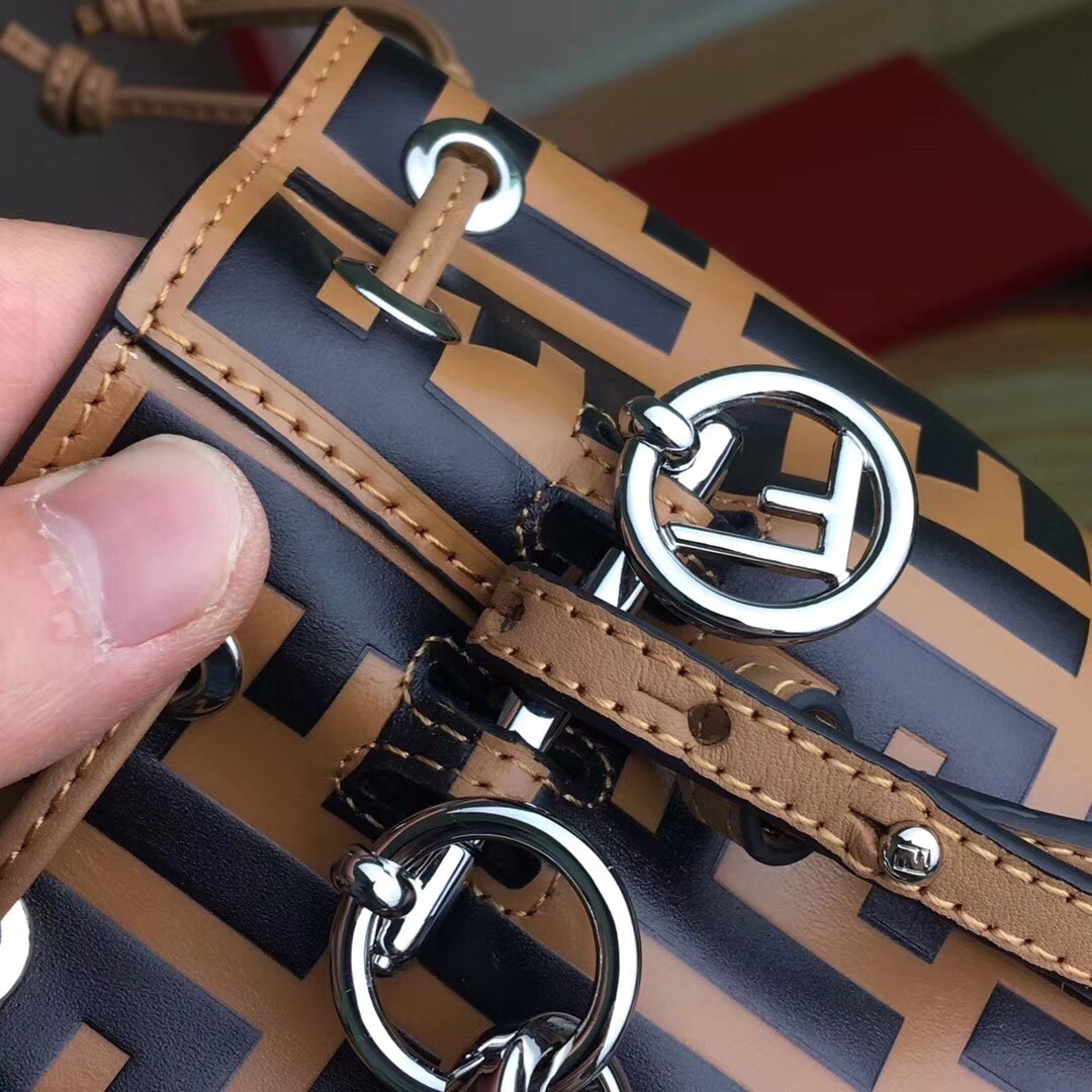 Fendi FF Mon Tresor Mini Bucket Bag In Brown Calfskin