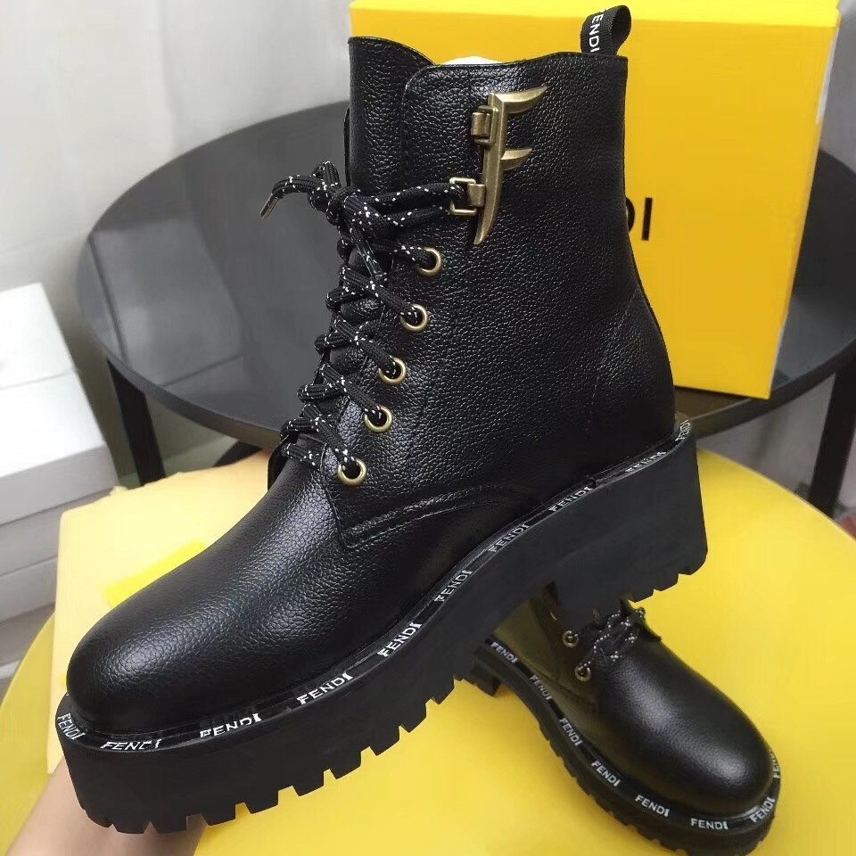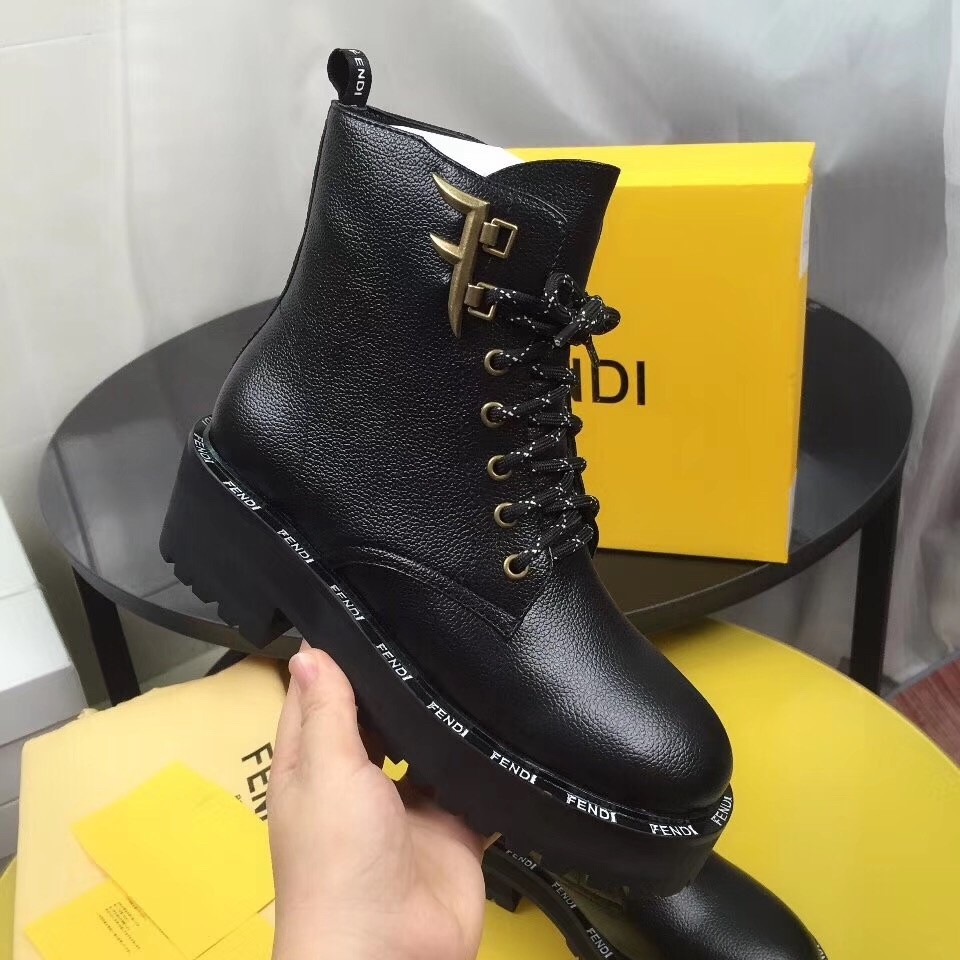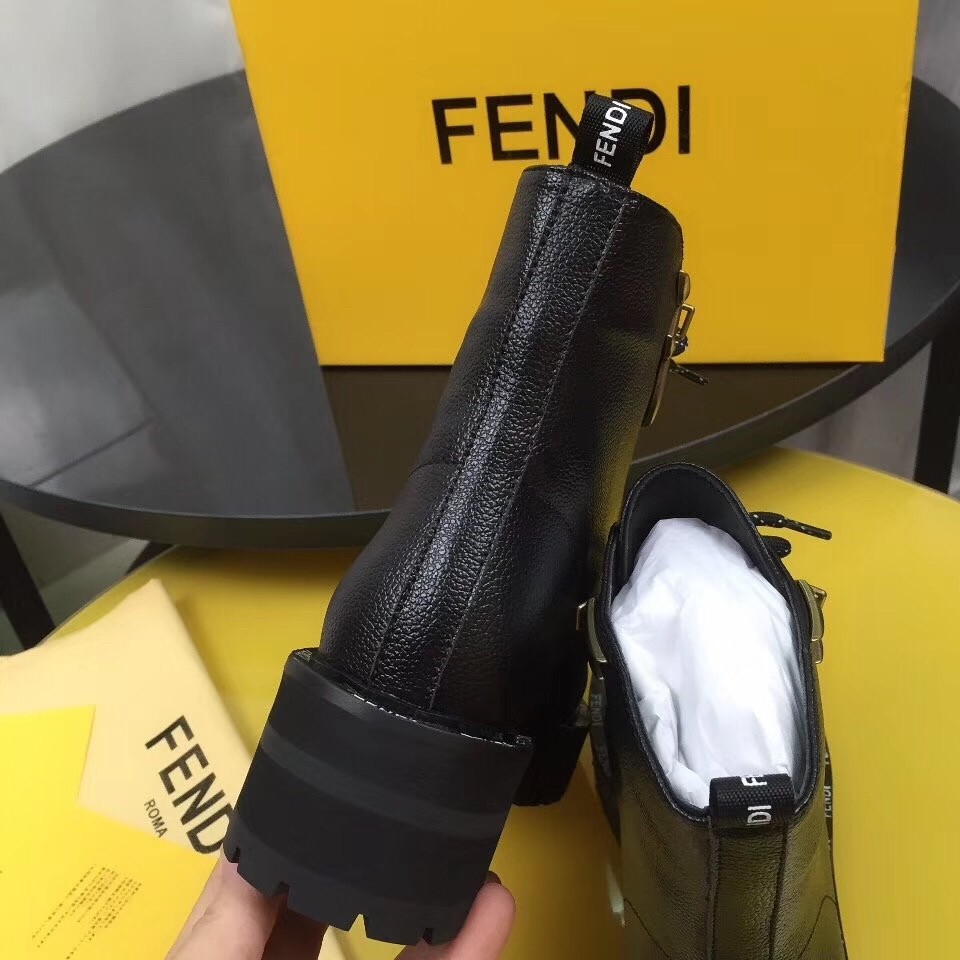 Fendi FFreedom Ankle Boots In Black Grained Leather