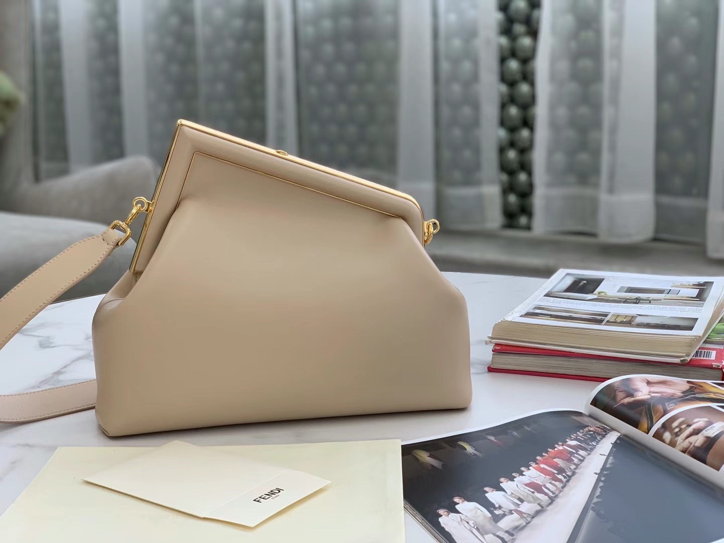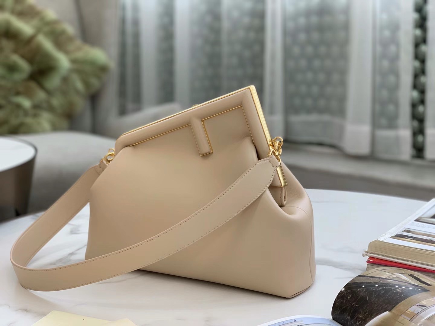 Fendi First Medium Bag In Beige Nappa Leather