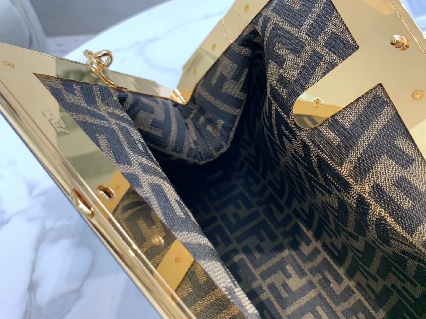 – Featuring an interior compartment lined in fabric with the iconic FF motif