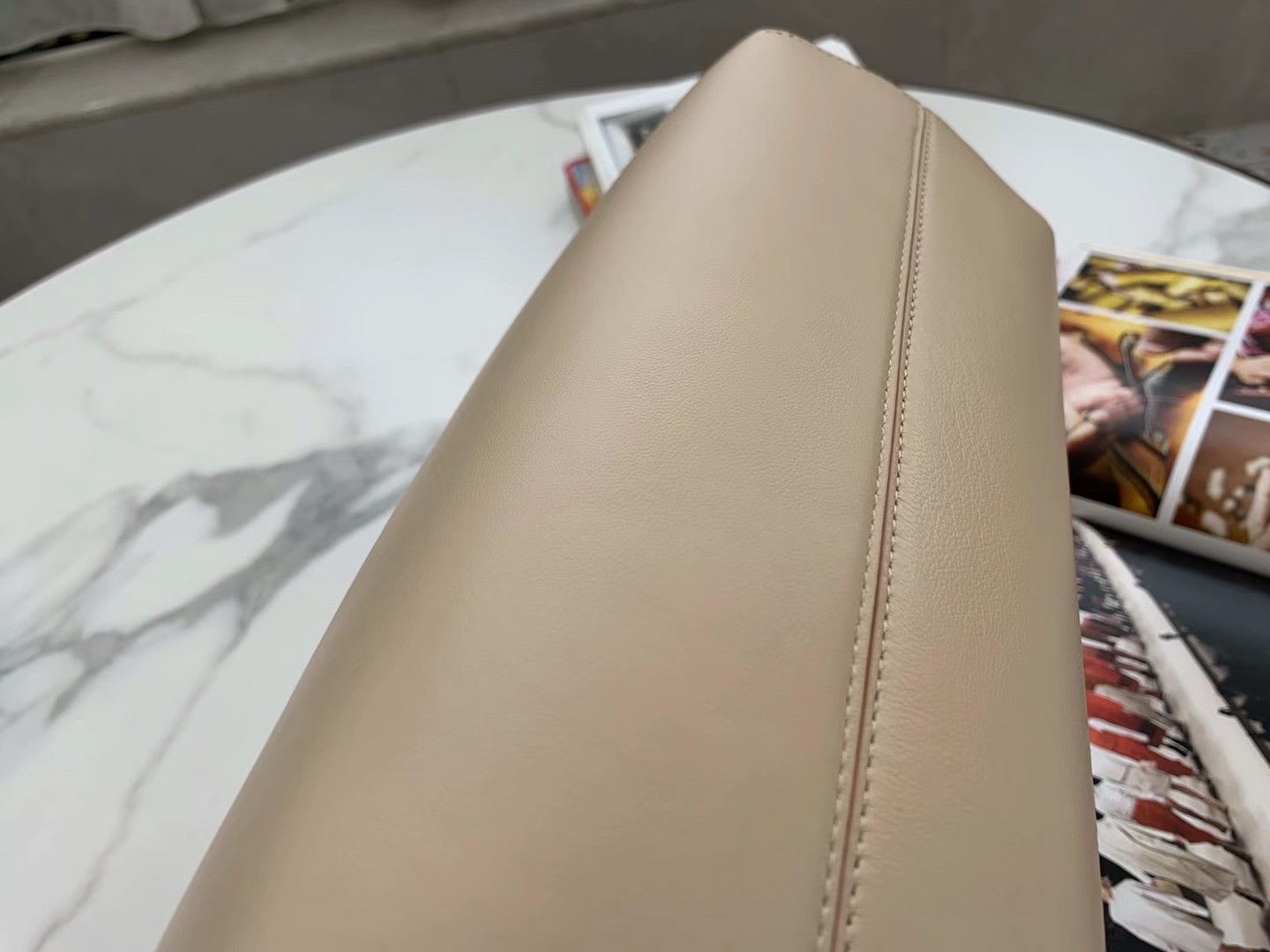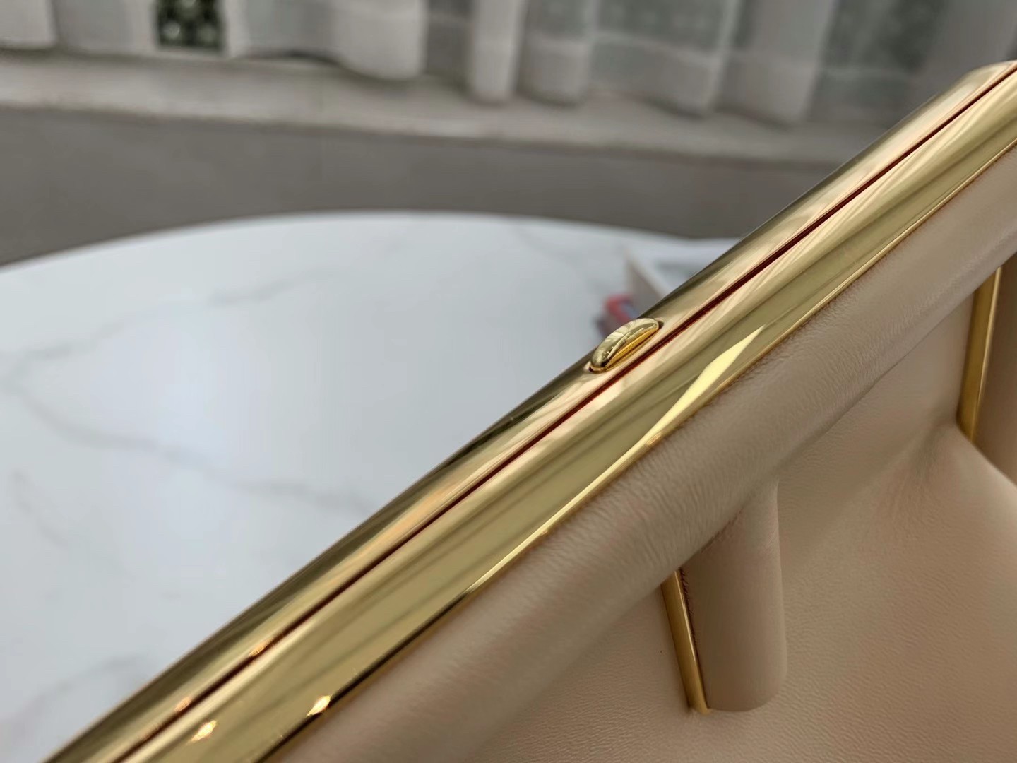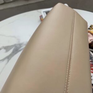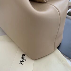 – Oversized metal F clasp bound with tone on tone nappa leather