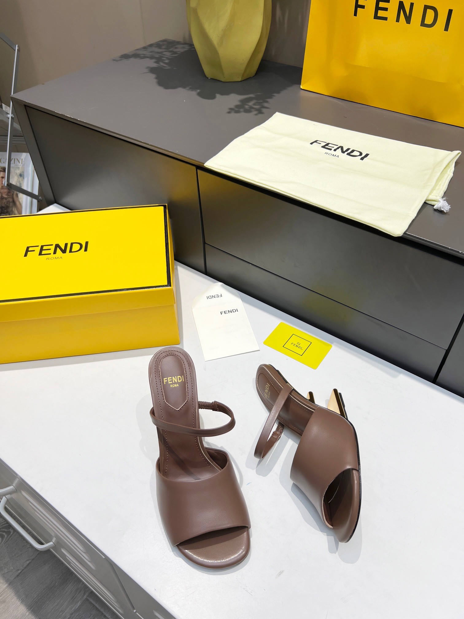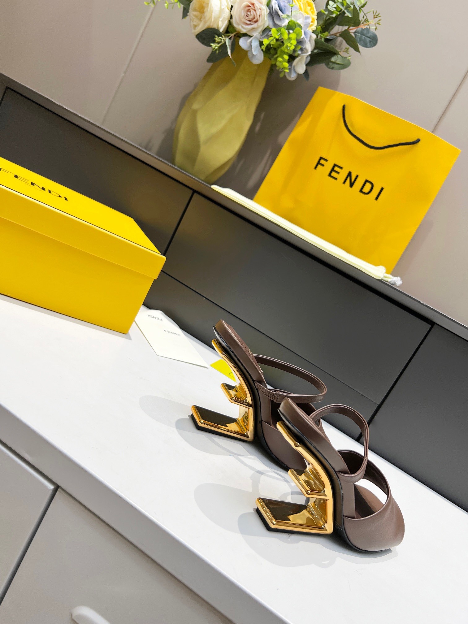 Fendi First Sandals 95mm In Dark Brown Calfskin