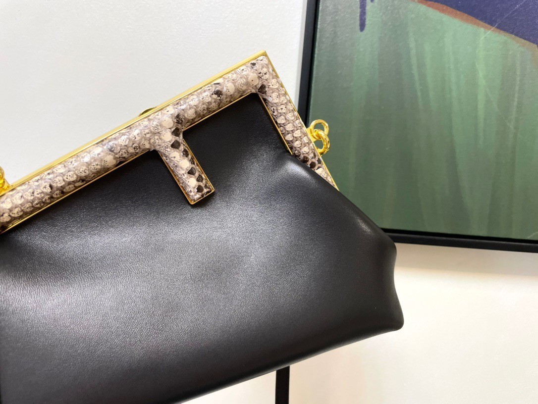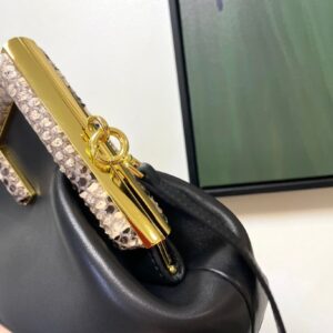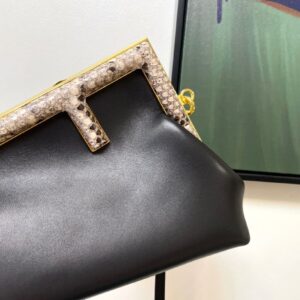 – Oversize metal F clasp bound in luxury tone on tone python leather