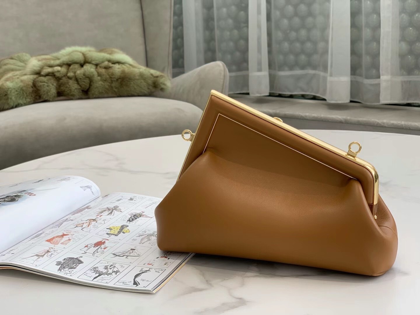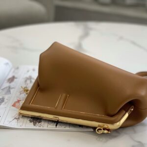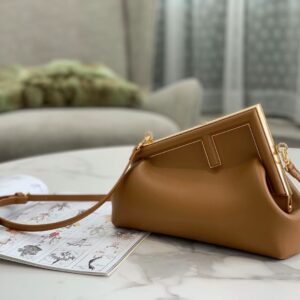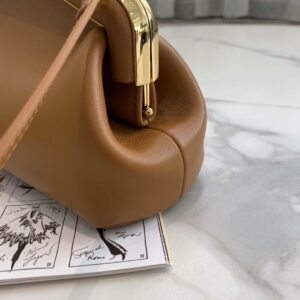 – Oversized metal F clasp bound with tone on tone nappa leather