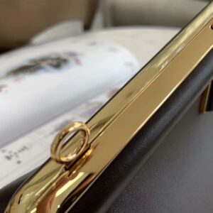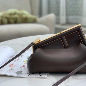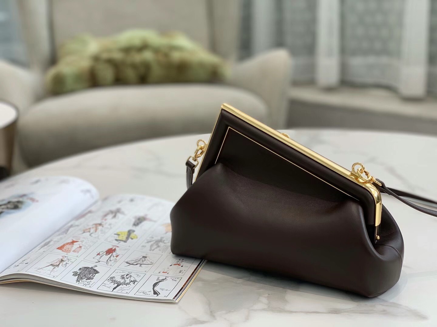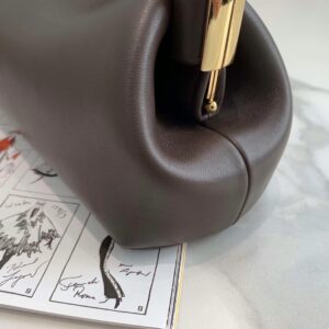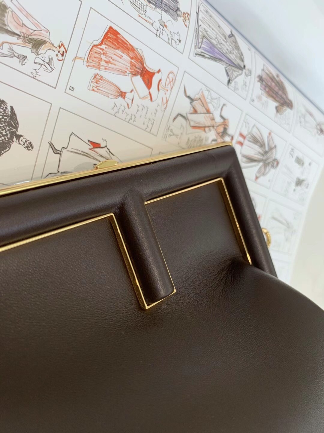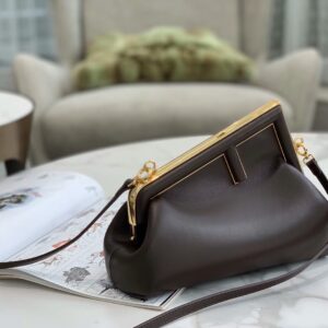 – Oversized metal F clasp bound with tone on tone nappa leather