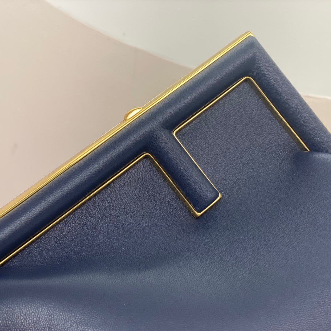 – Oversized metal F clasp bound with tone on tone nappa leather