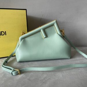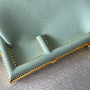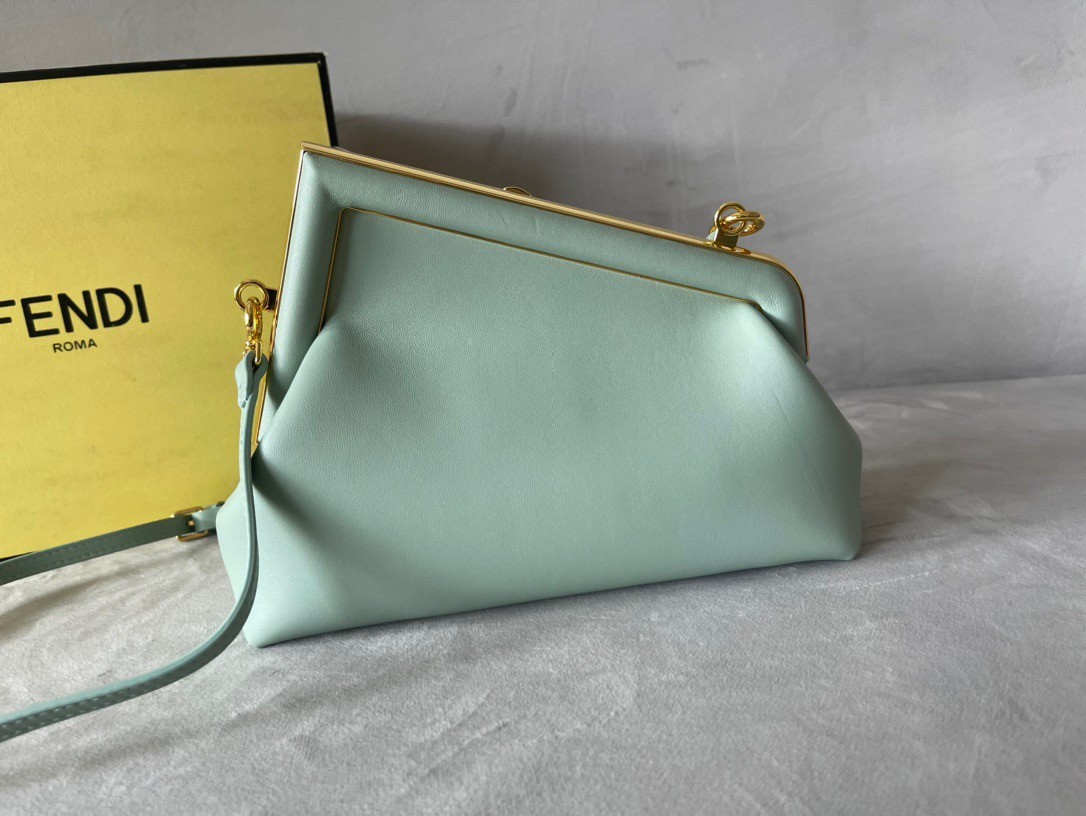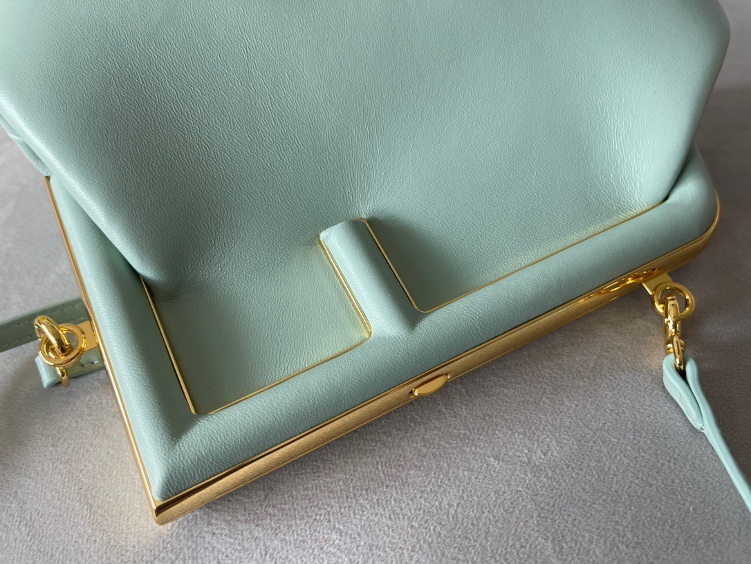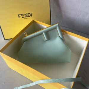 – Oversized metal F clasp bound with tone on tone nappa leather