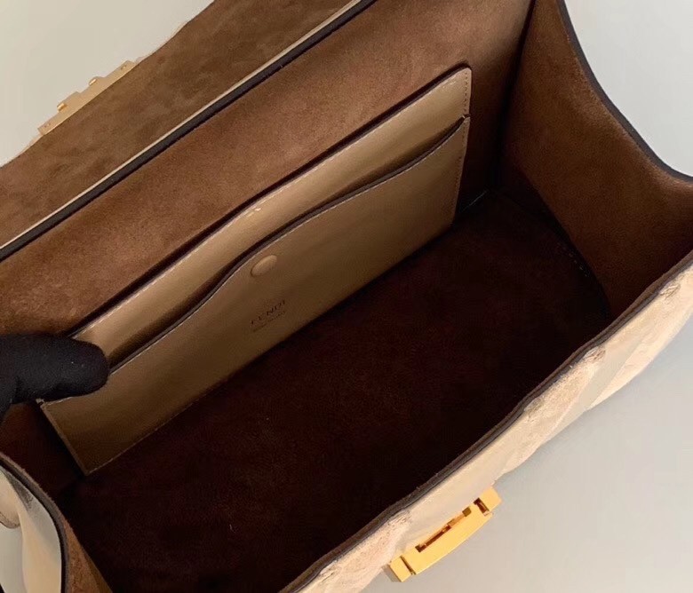 – Geometric flap with embossed corners and an iconic FF press-stud fastening