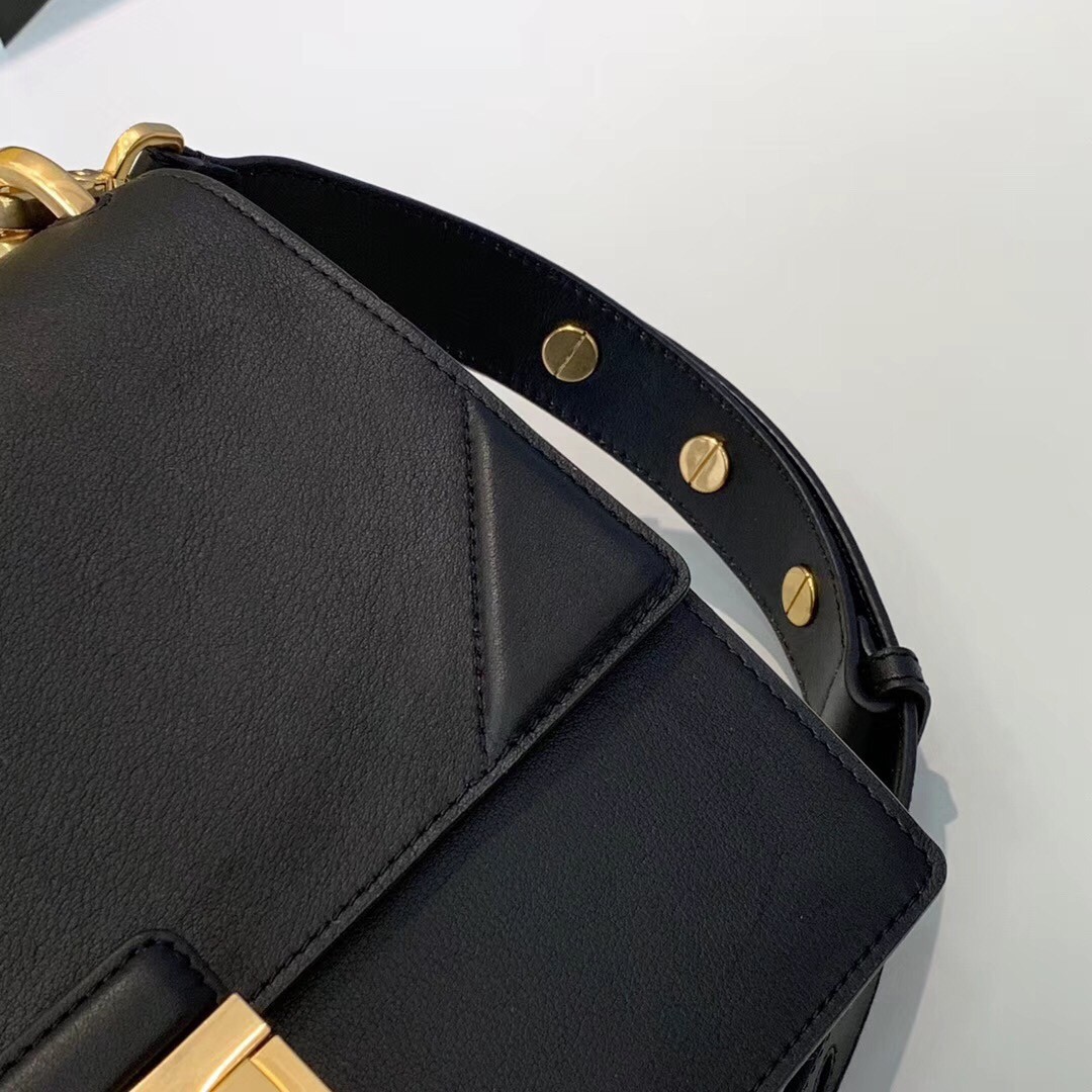 – Two detachable shoulder straps: a long one that is adjustable with buttons and a short chain one