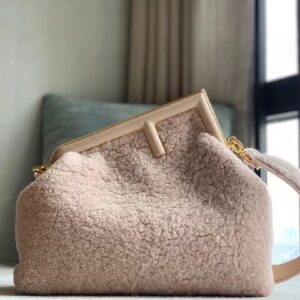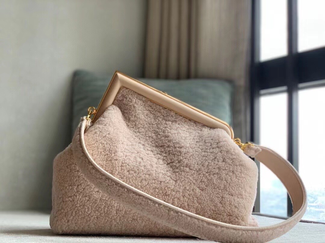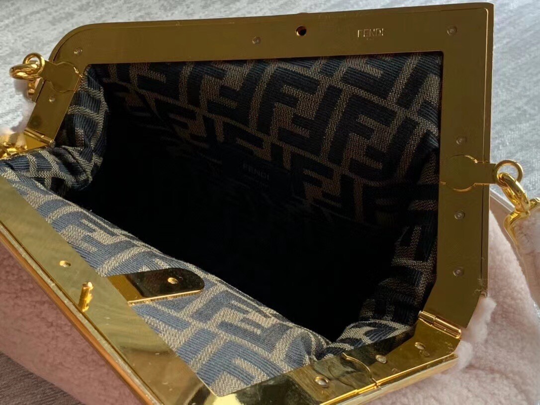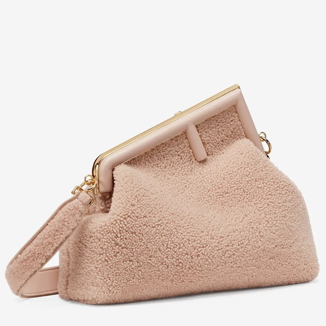Fendi Medium First Bag In Pink Wool Sheepskin