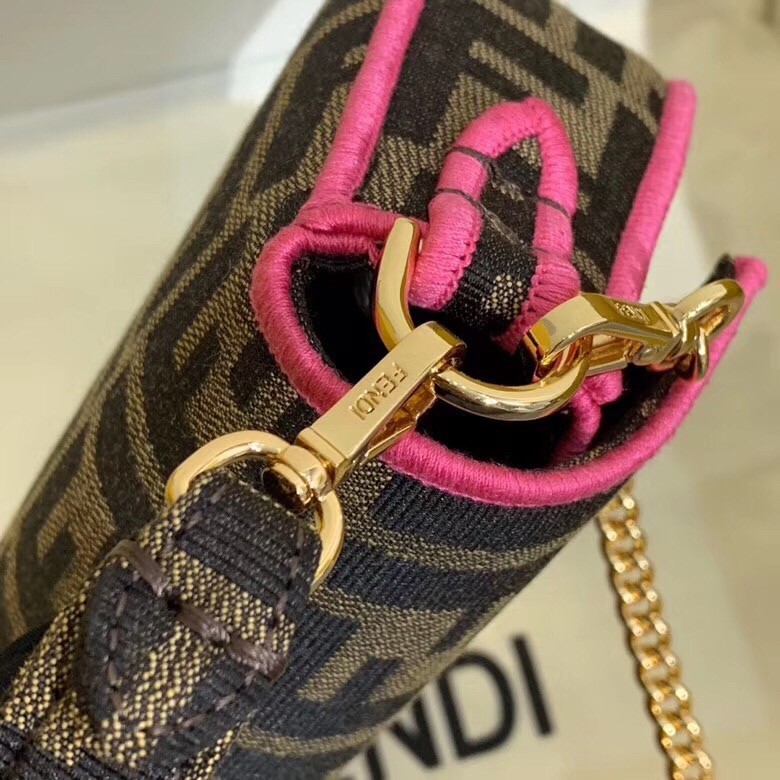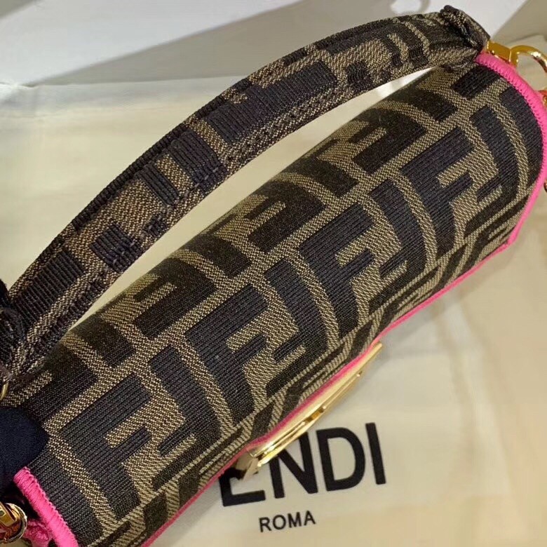 Fendi Mini Baguette Bag In FF Fabric With Fuchsia Trim