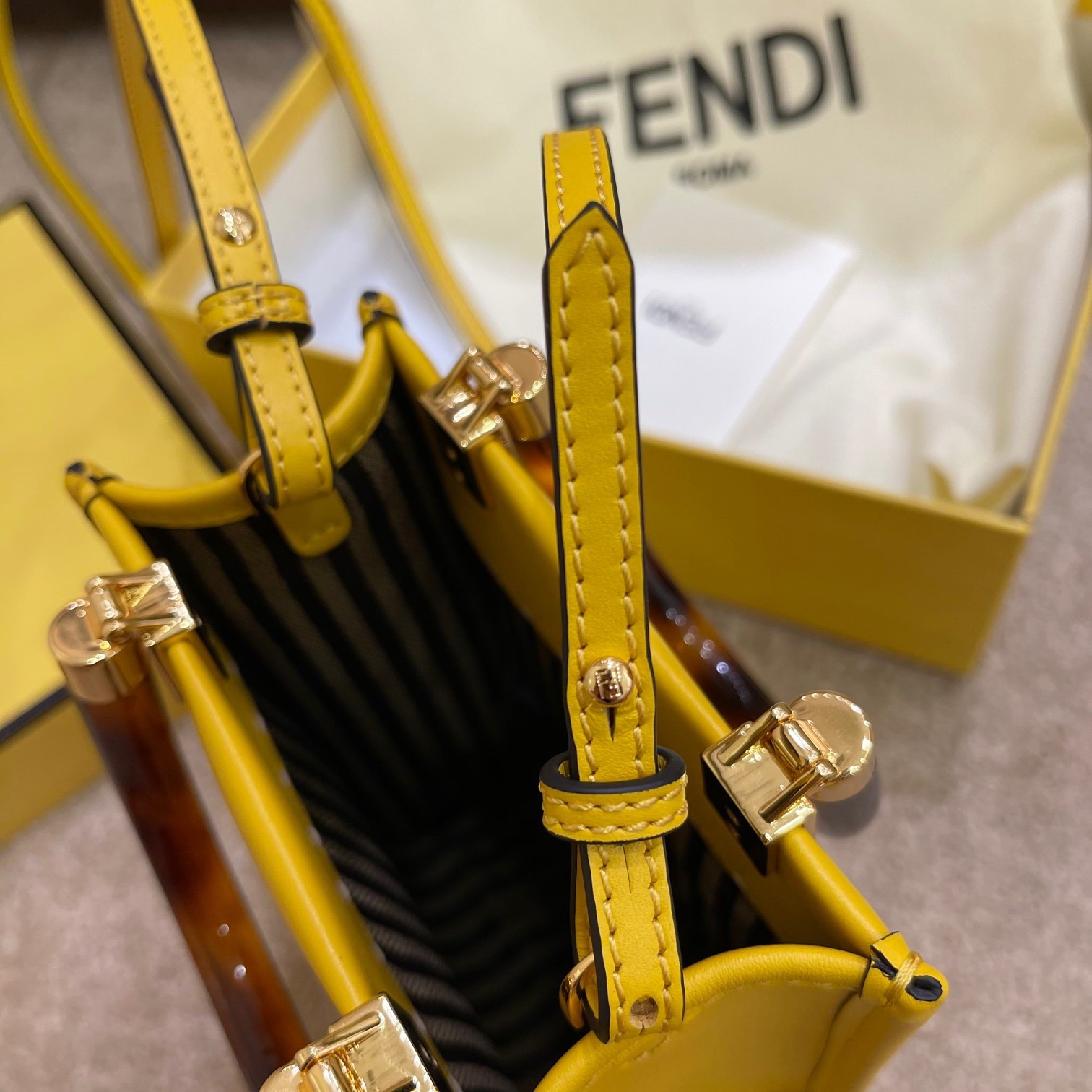 Fendi Mini Sunshine Shopper Bag In Yellow Leather