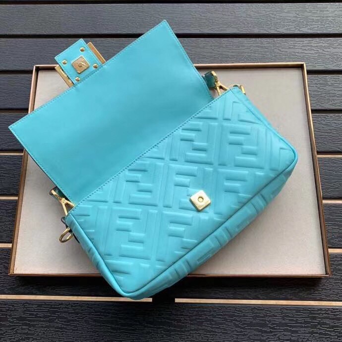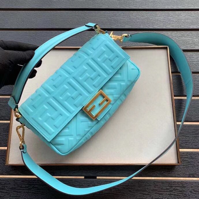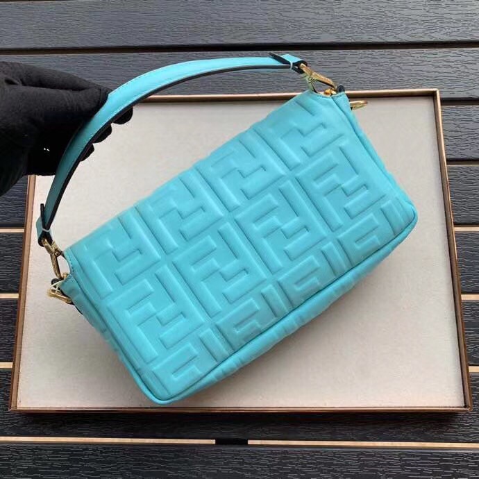 Fendi Pale Blue FF Motif Medium Baguette Bag