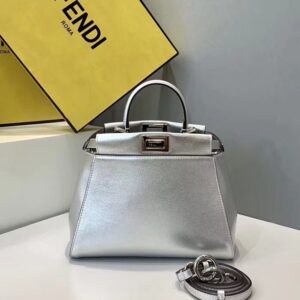 Fendi Peekaboo Mini Bag In Silver Metallic Lambskin