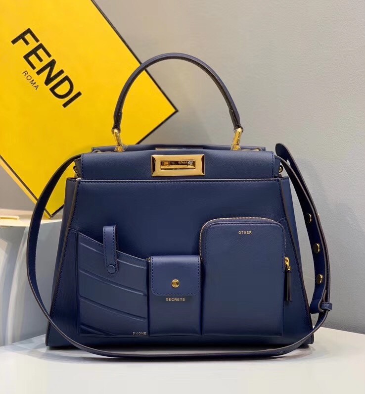 Fendi Peekaboo Pocket Medium Bag In Blue Calfskin