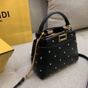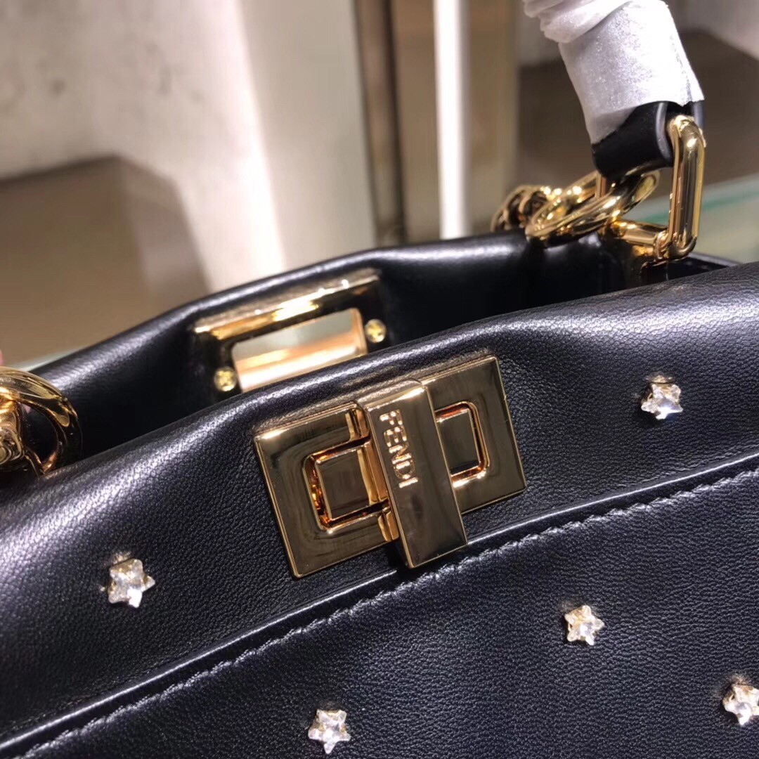 Fendi Peekaboo XS Bag With Star Studs In Black Nappa Leather