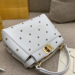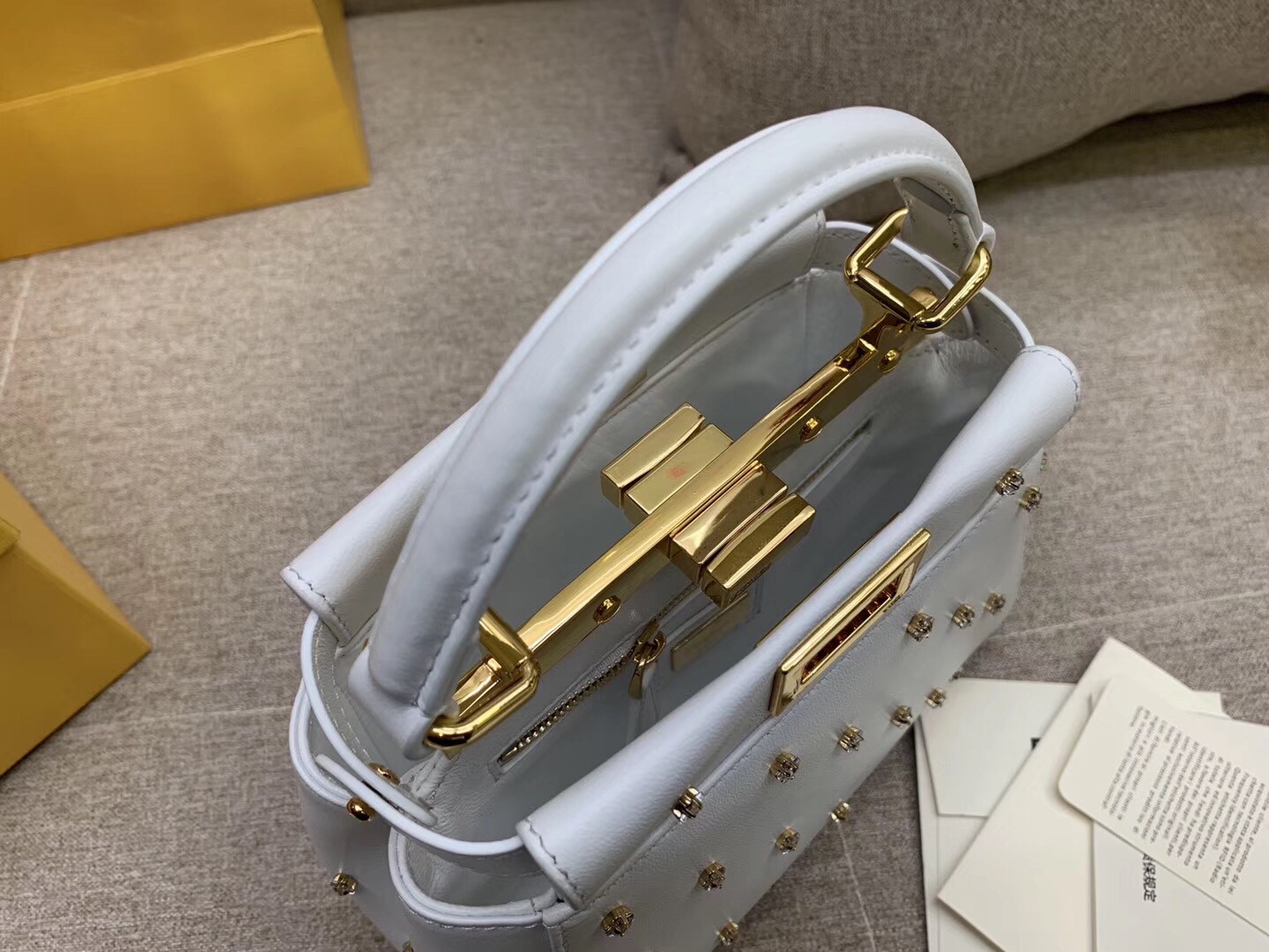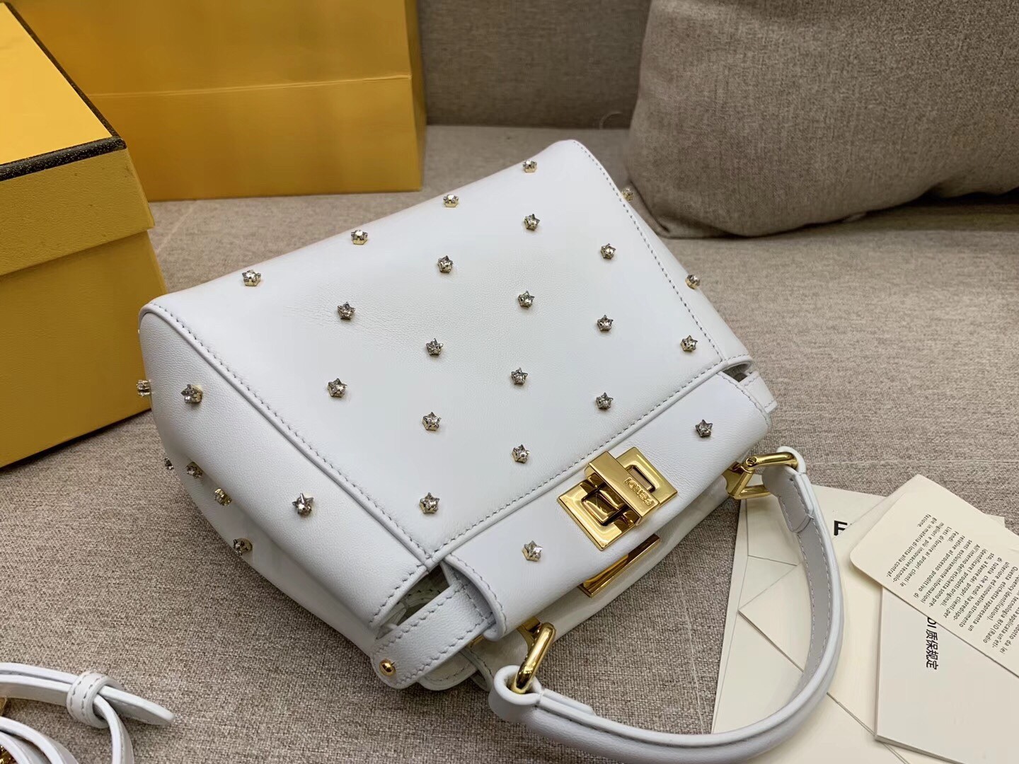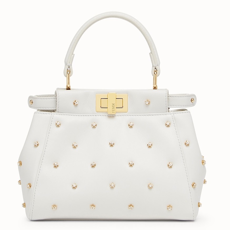 Fendi Peekaboo XS Bag With Star Studs In White Nappa Leather