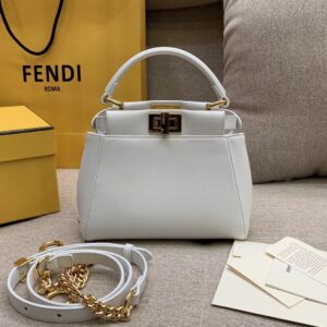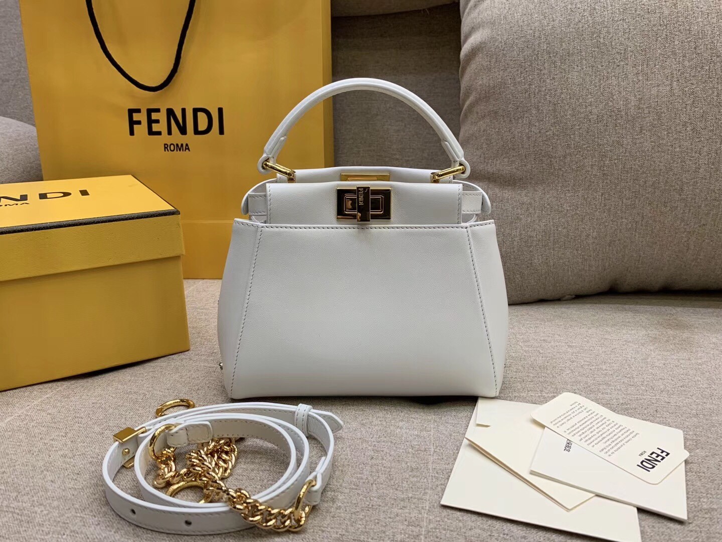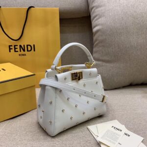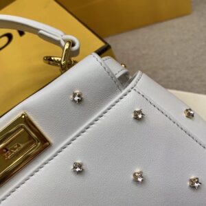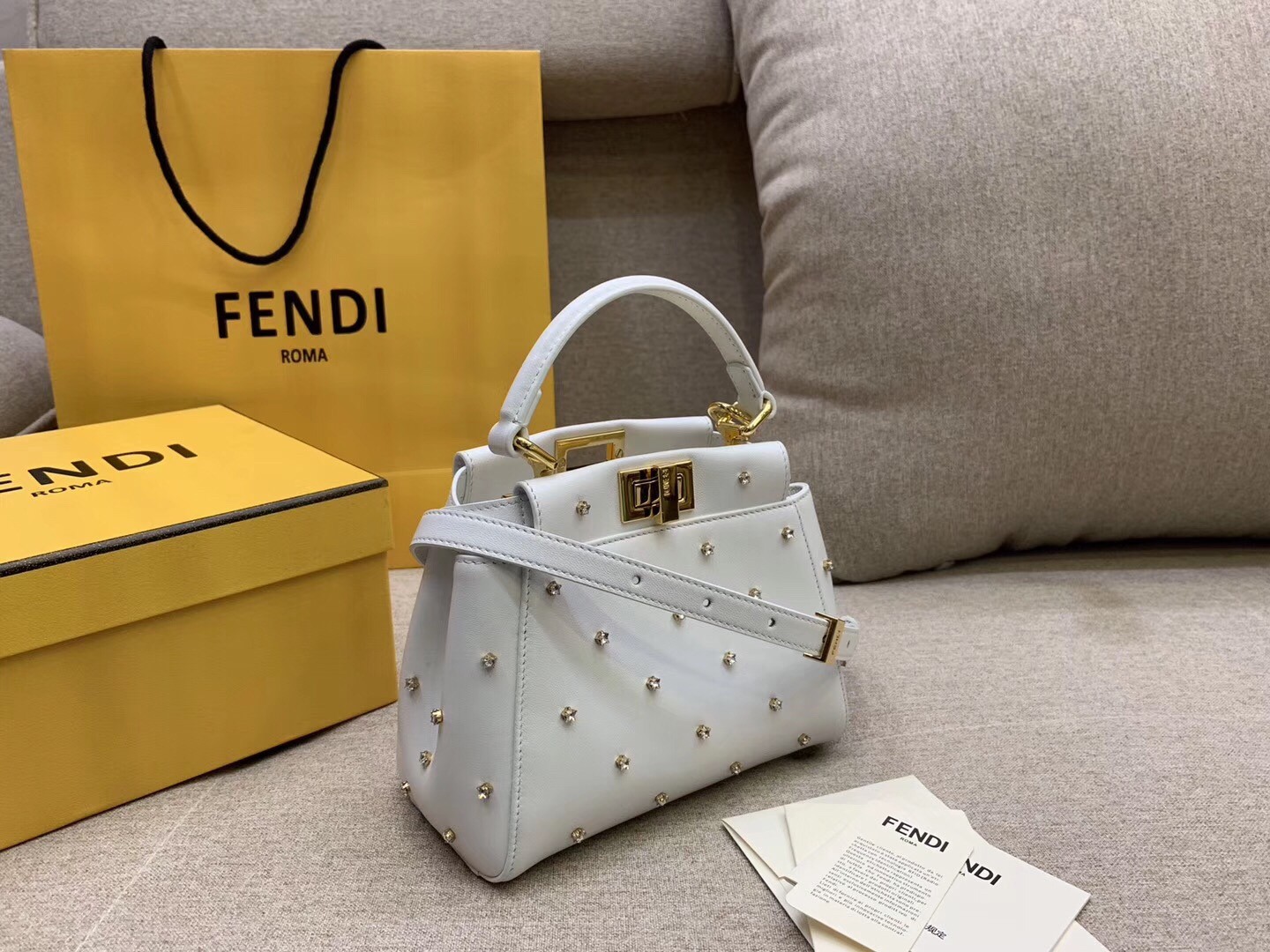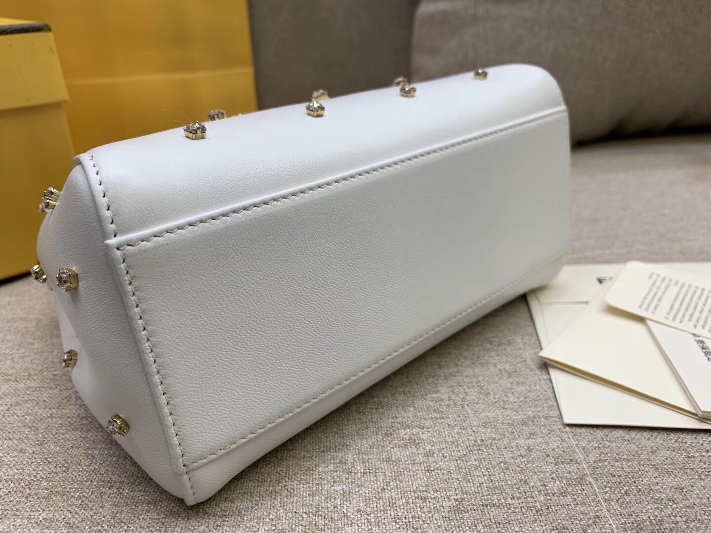 Fendi Peekaboo XS Bag With Star Studs In White Nappa Leather