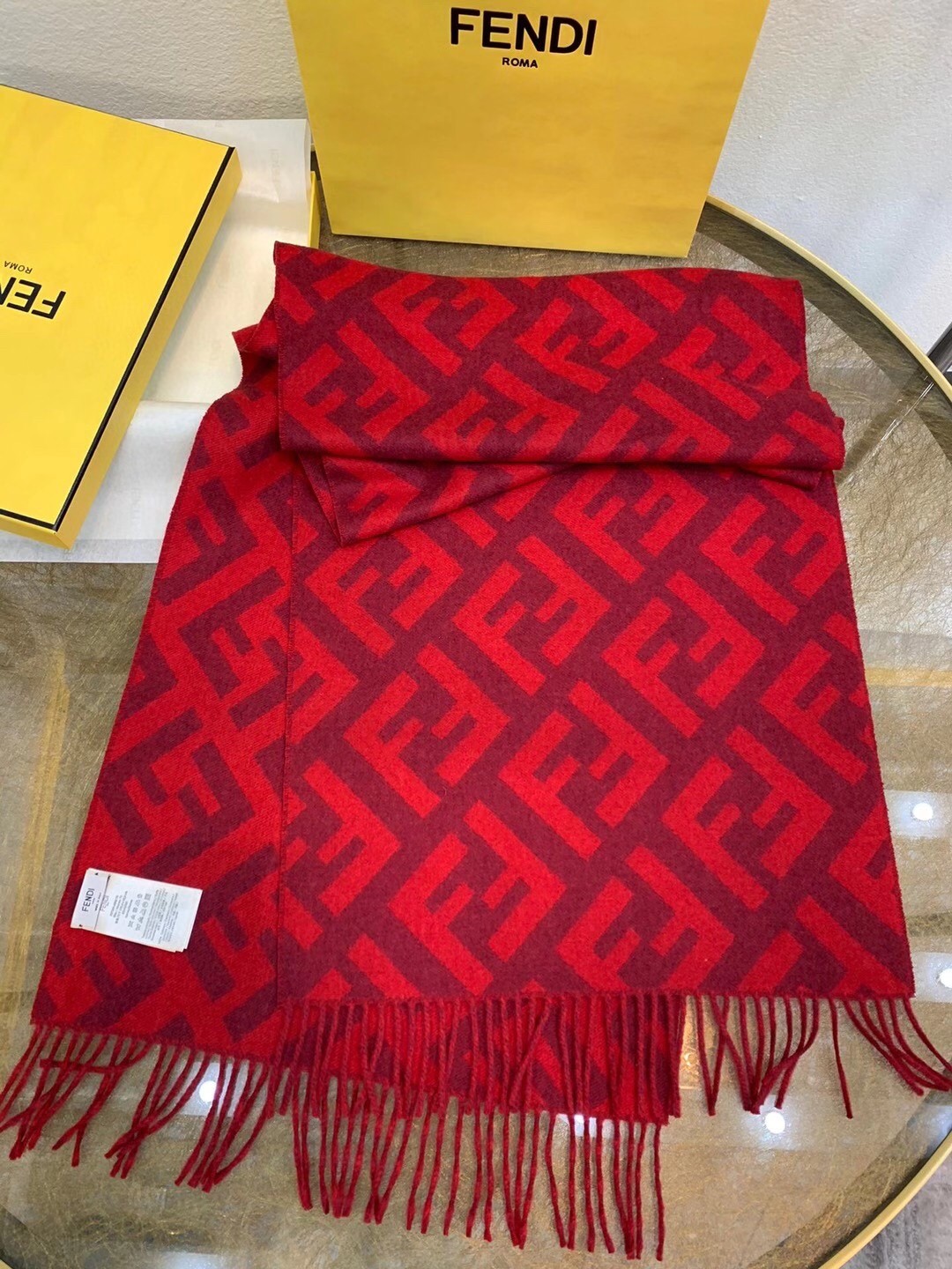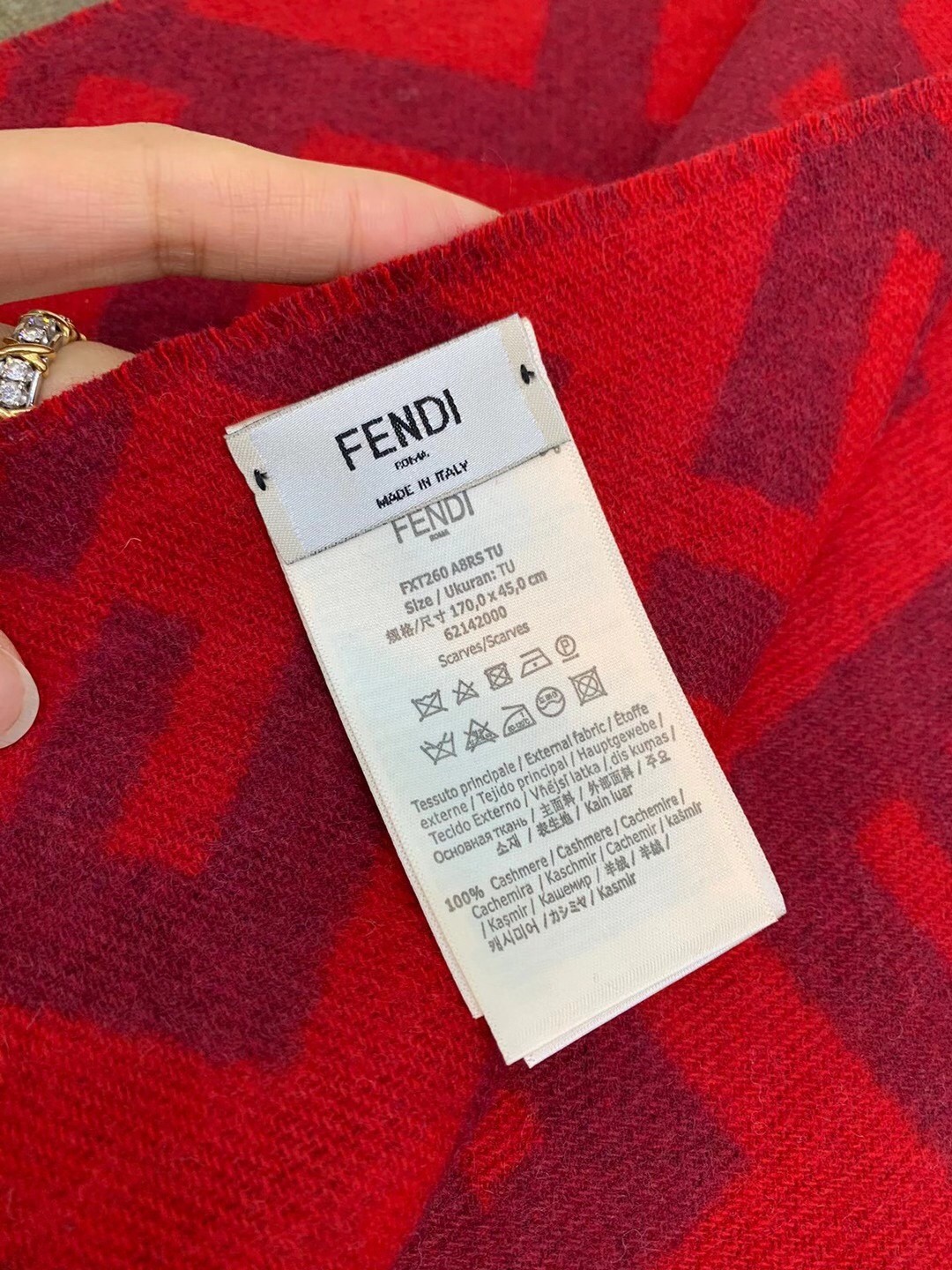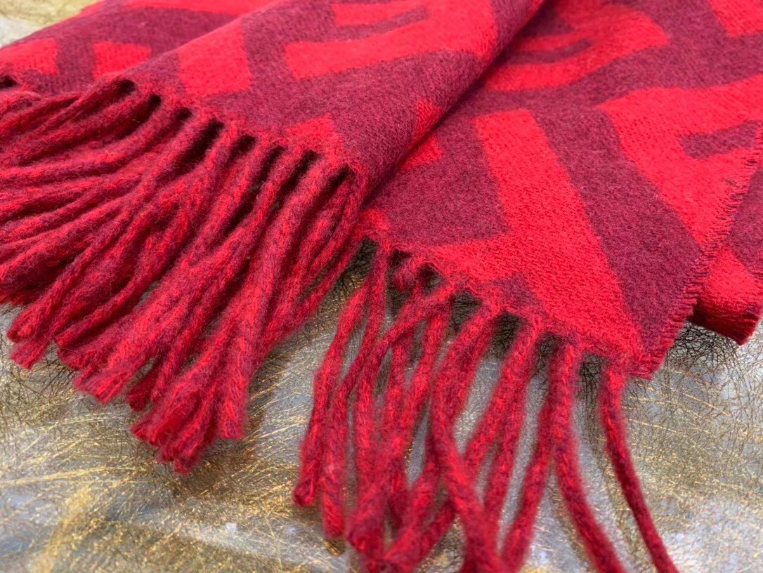 Fendi Red Cashmere FF Long Scarf